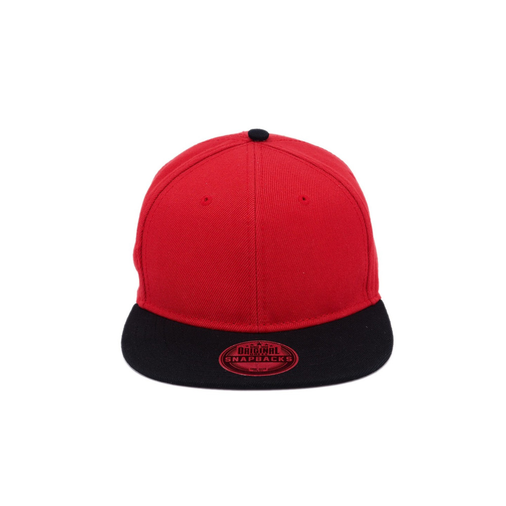 Šestipanelová čepice s plochým kšiltem, spodní strana kšiltu je ve stejné barvě čepice a plastovým zapínáním. Čepice má vyztužené čelo, obšité větrací otvory a bavlněný potící pásek.