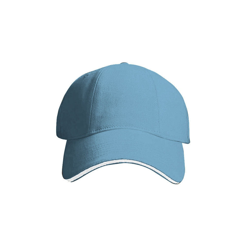Baseballová šesti panelová čepice s kontrastní linkou vlepenou v kšiltu, díky posunutým švům ideální pro potisk či výšivku, zapínání na kovovou sponu s očkem.