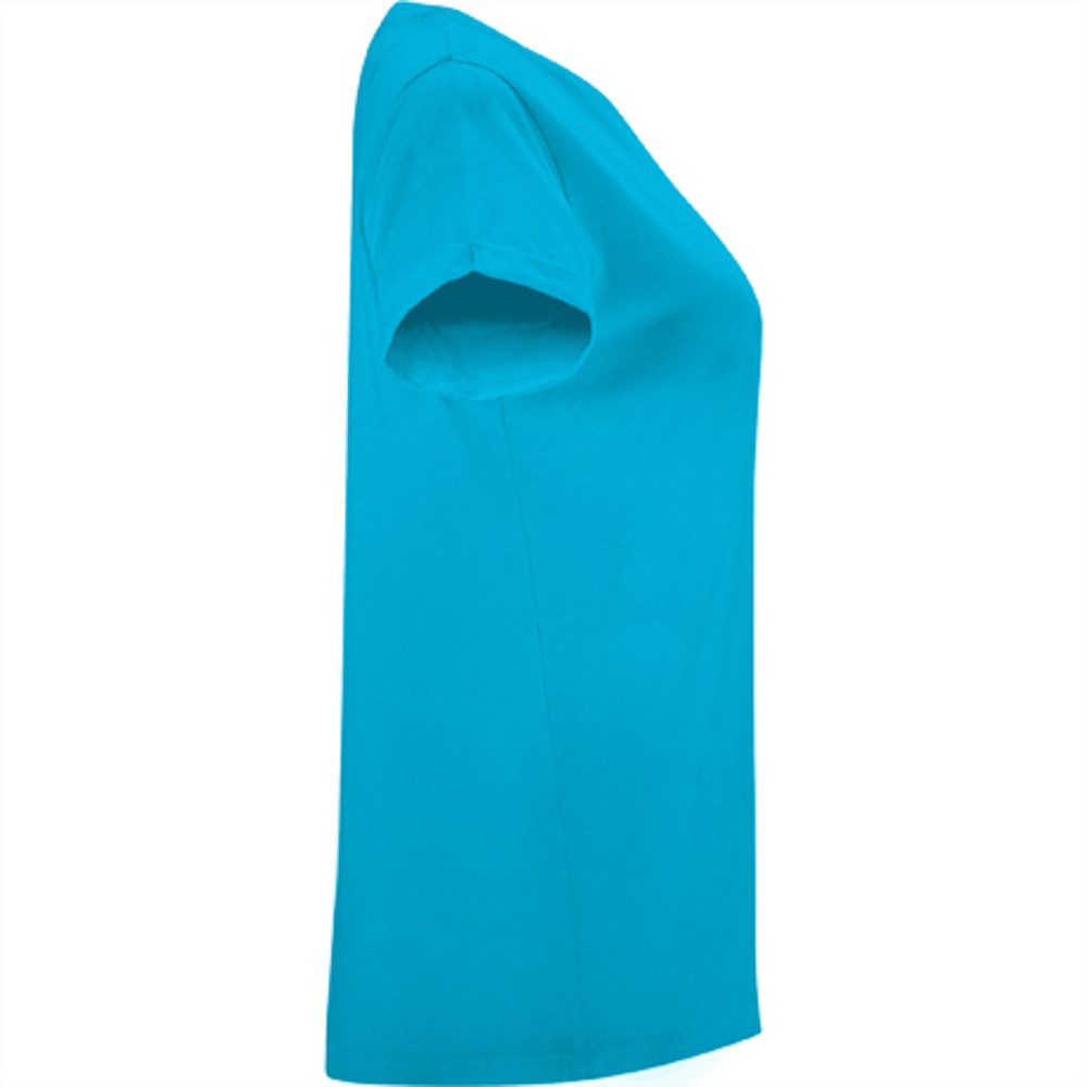 Dámské tričko volnějšího střihu s krátkým rukávem. Kulatý výstřih ze stejné látky, zpevněné skryté švy. Ukončení rukávů s ohrnutím s přišitím ve 4 bodech. Boční švy.