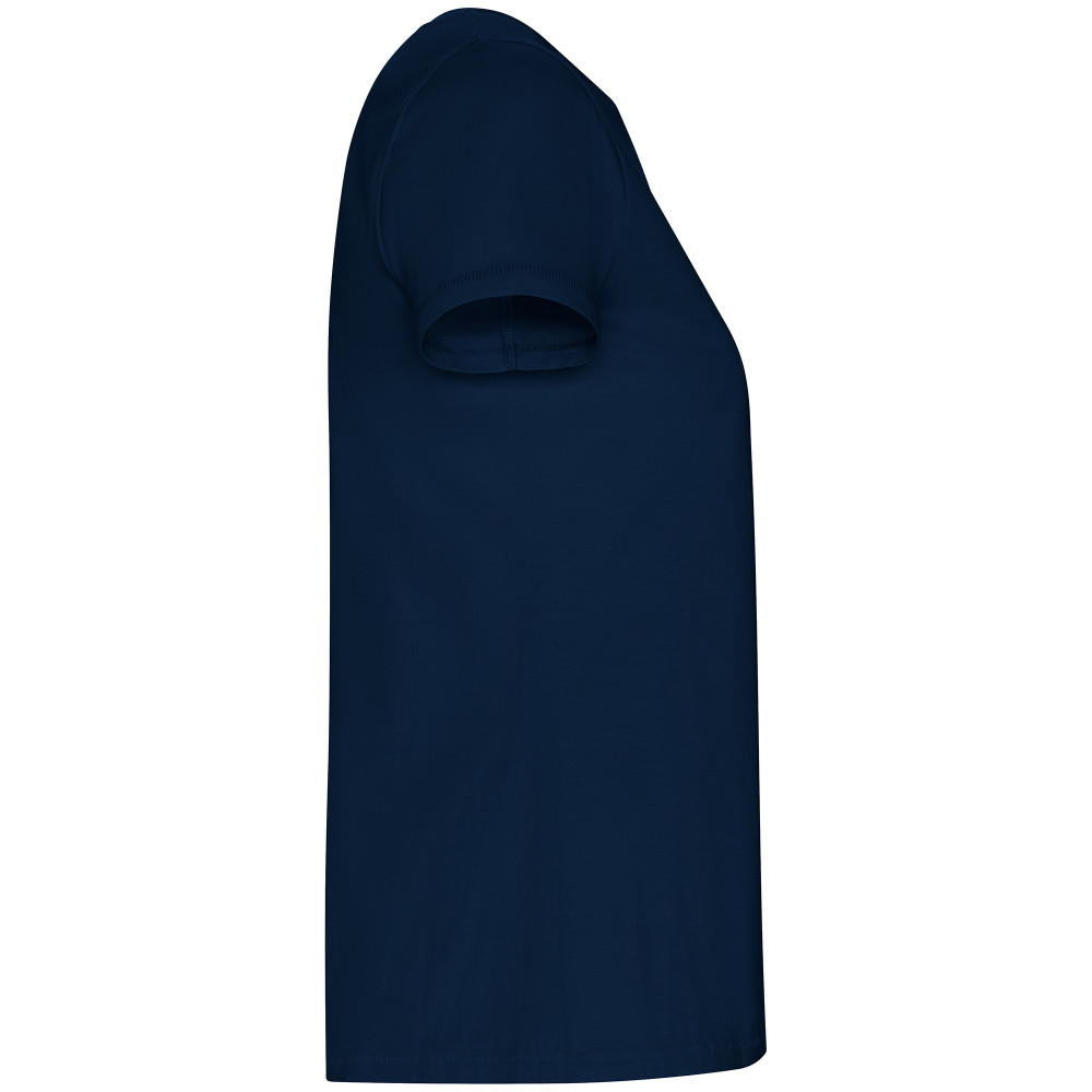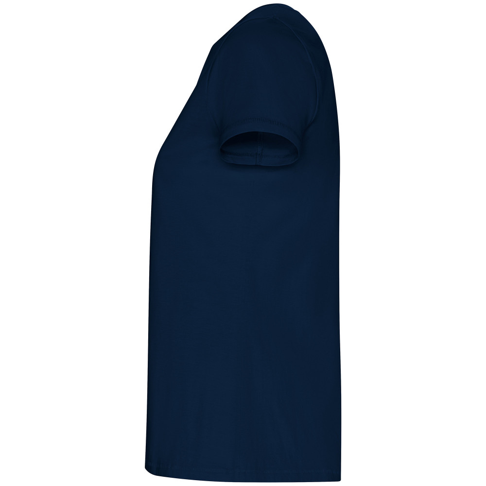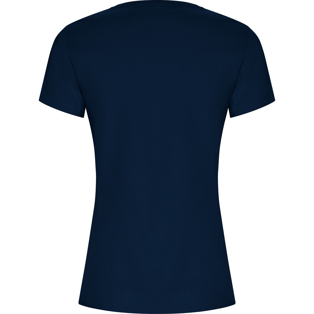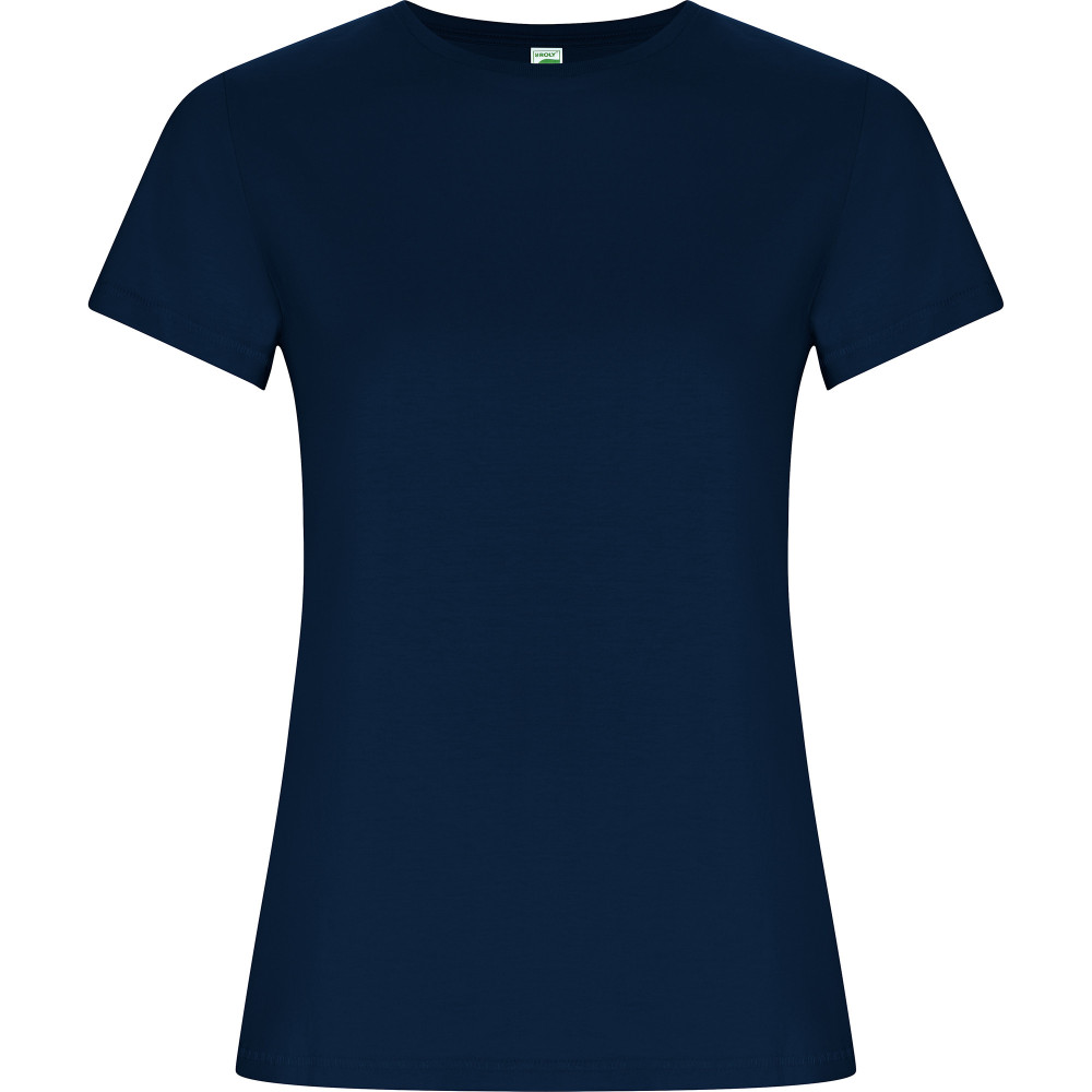 Dámské tričko s krátkým rukávem z organické bavlny, vypasovaný střih. Kulatý průkrčník s žebrováním 1x1. Dekorativní prošití na spodním lemu a rukávech. Boční švy.