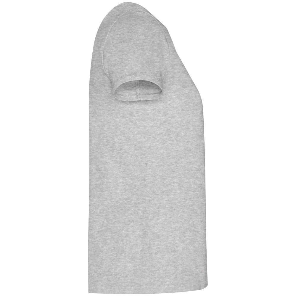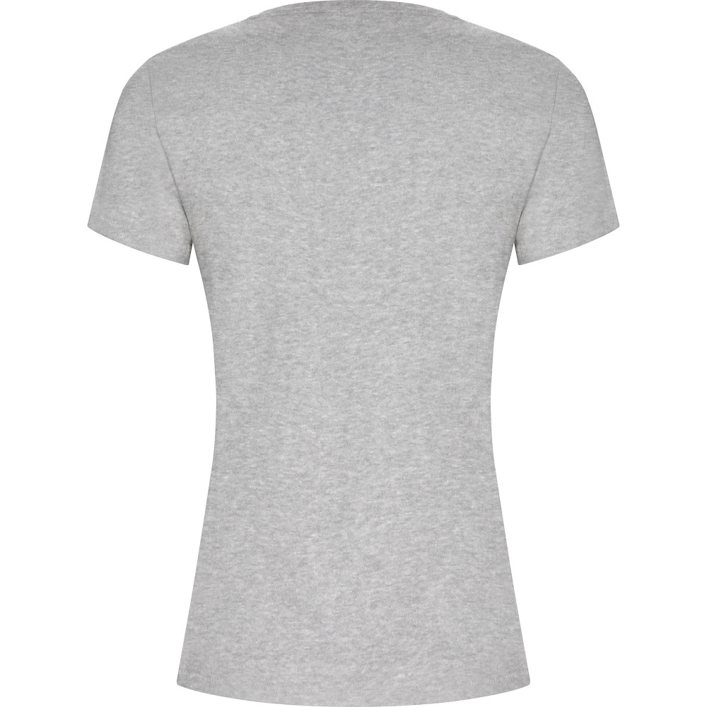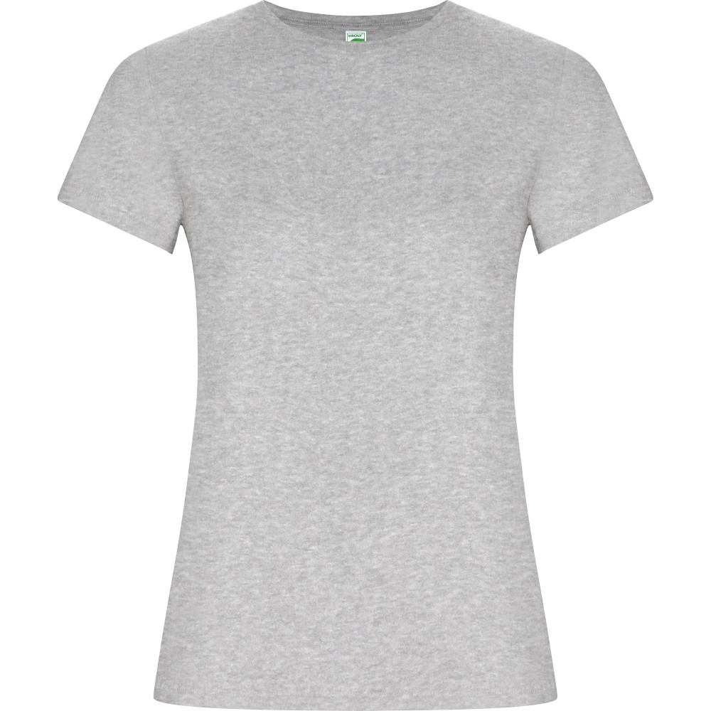 Dámské tričko s krátkým rukávem z organické bavlny, vypasovaný střih. Kulatý průkrčník s žebrováním 1x1. Dekorativní prošití na spodním lemu a rukávech. Boční švy.
