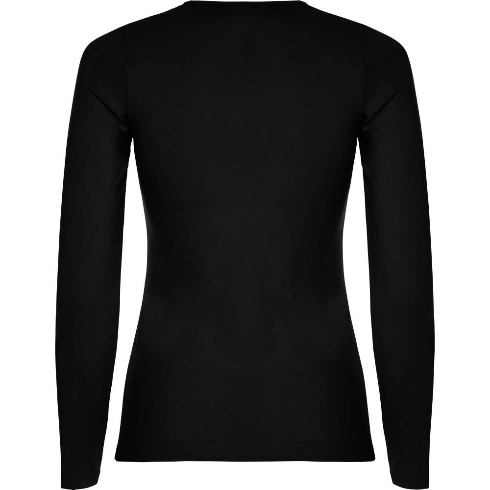 Polopřiléhavé dámské triko s dlouhým rukávem a kulatým výstřihem zakončeným jemným lemem. Rukávy bez manžet, boční švy.