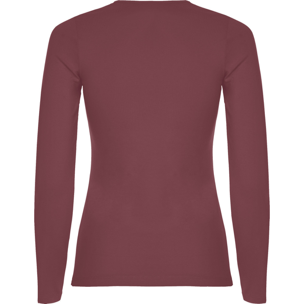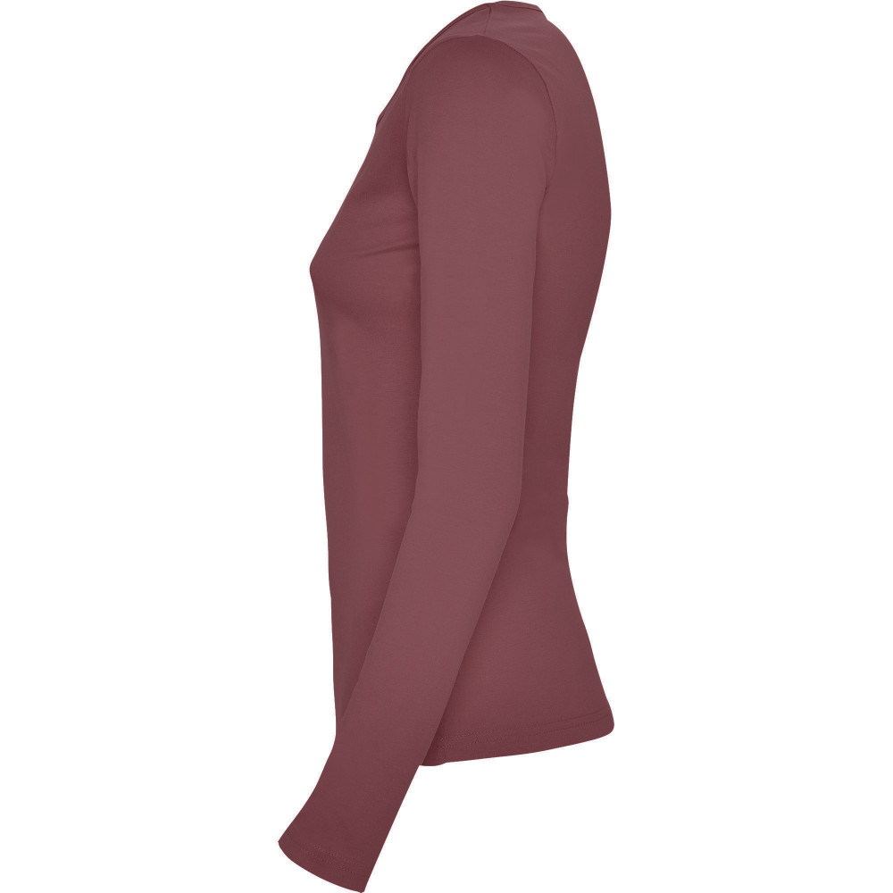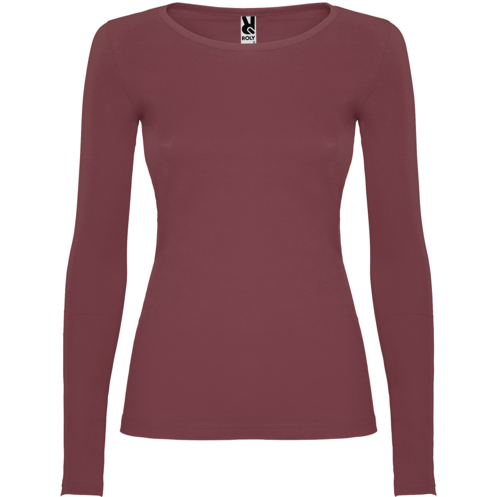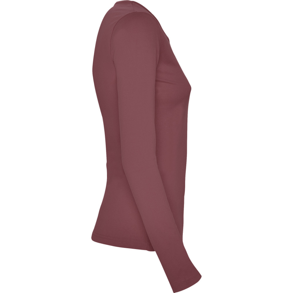 Polopřiléhavé dámské triko s dlouhým rukávem a kulatým výstřihem zakončeným jemným lemem. Rukávy bez manžet, boční švy.