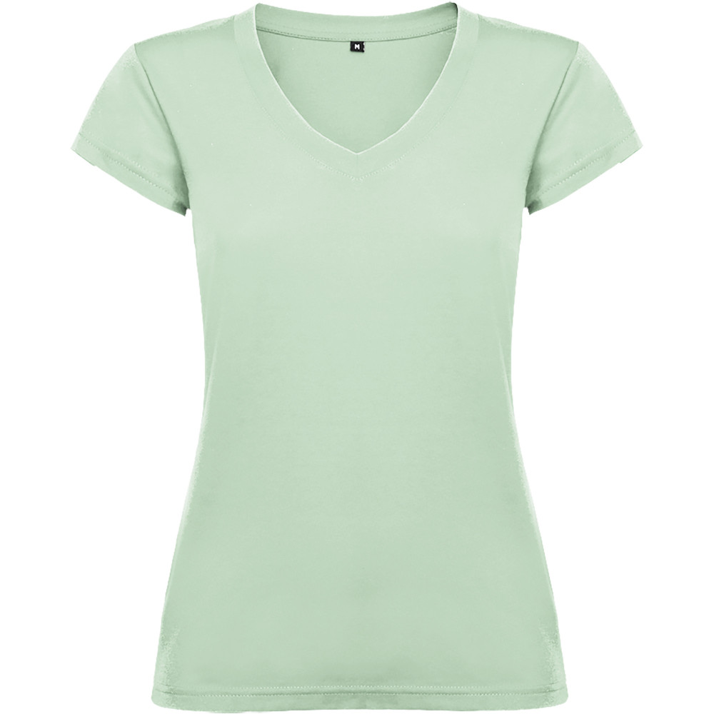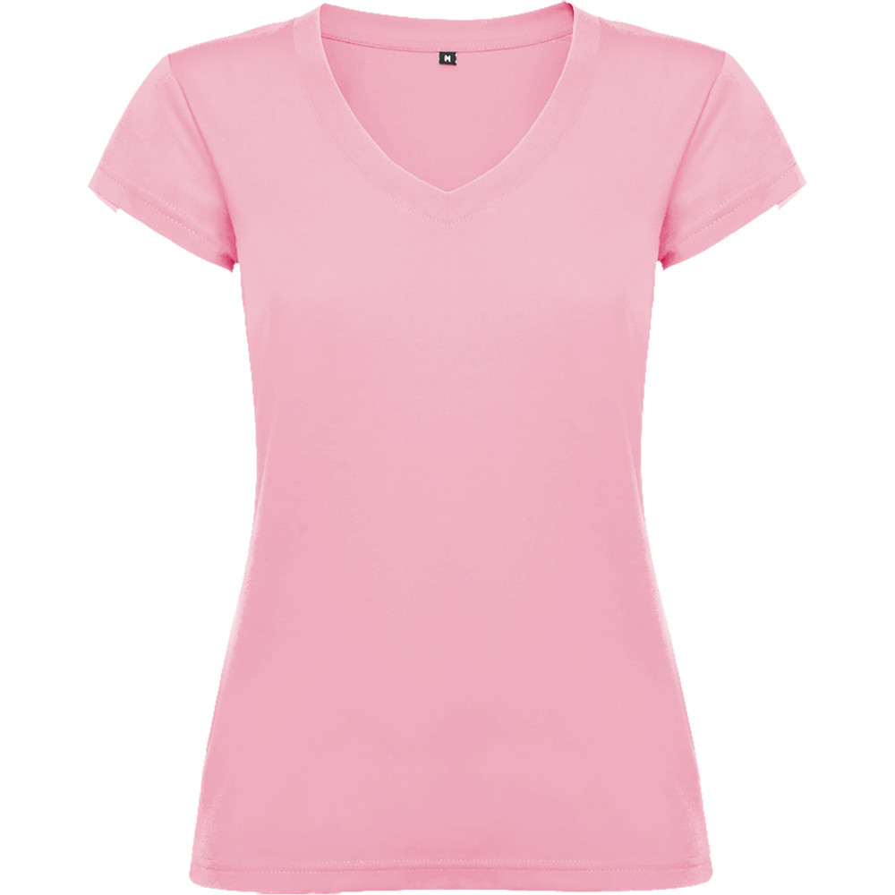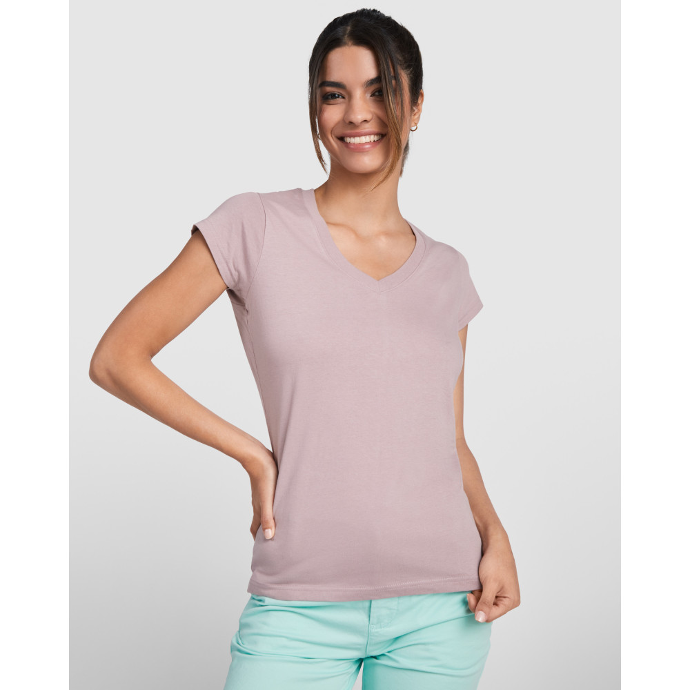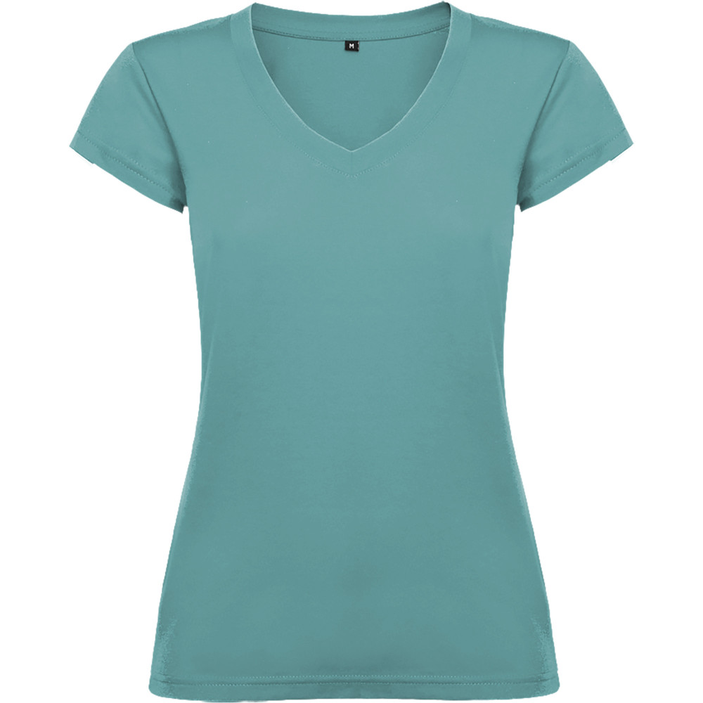 Dámské triko s krátkým rukávem a výstřihem do V. Vypasovaný střih s bočními švy.