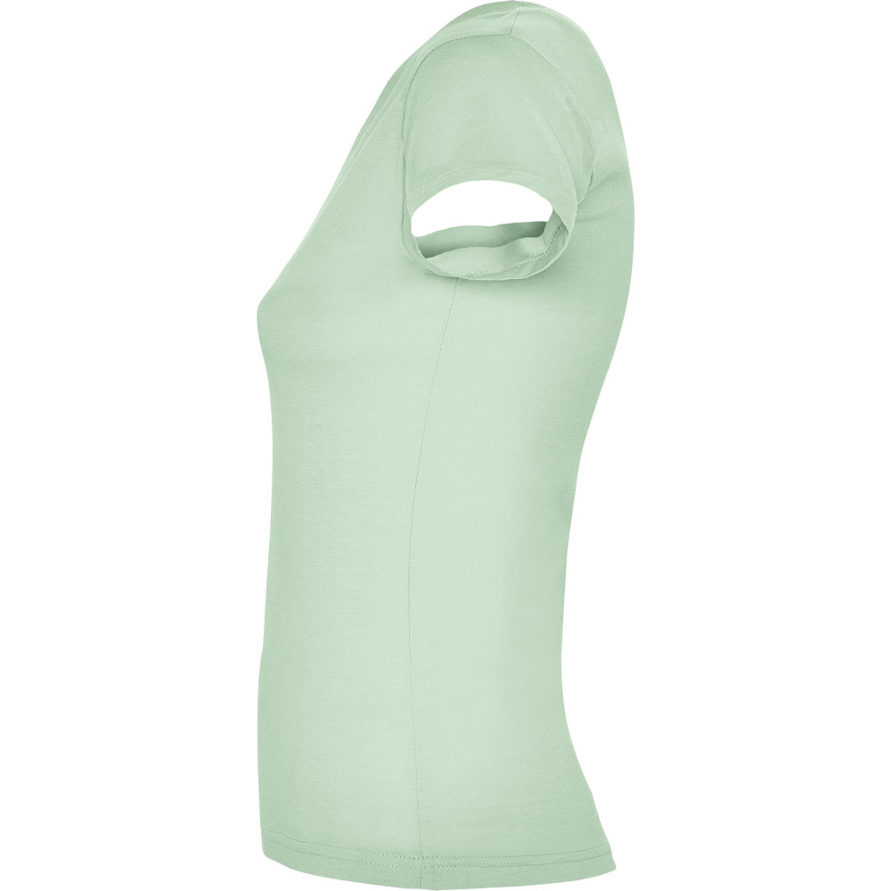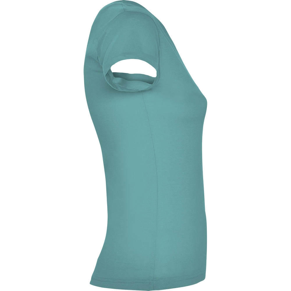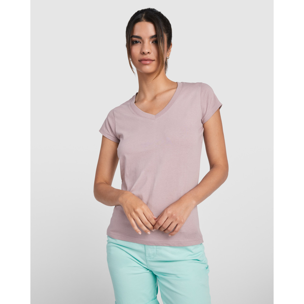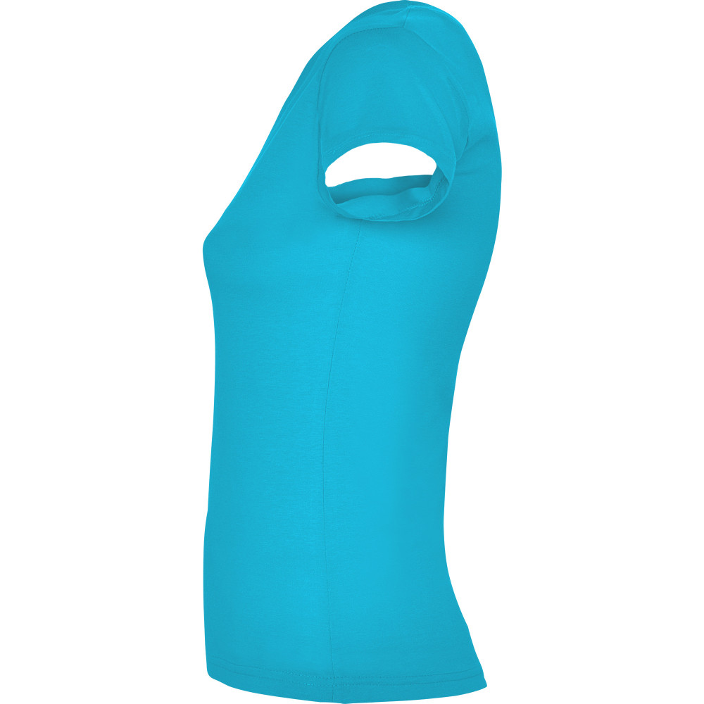 Dámské triko s krátkým rukávem a výstřihem do V. Vypasovaný střih s bočními švy.