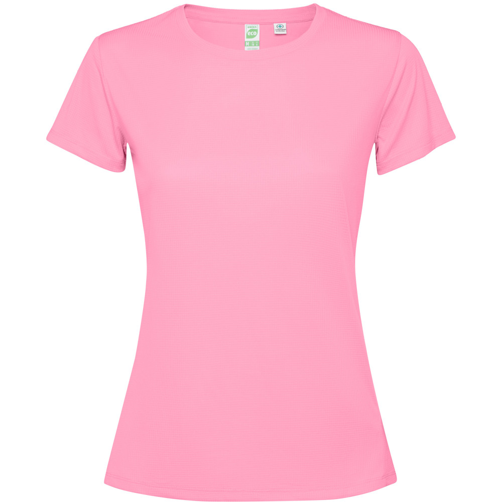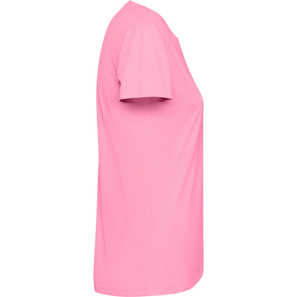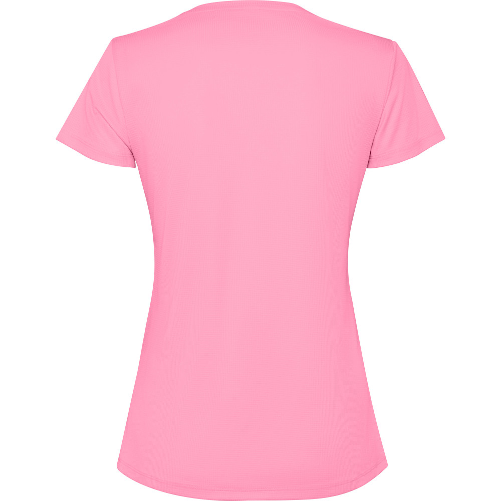Dámské technické tričko s krátkým rukávem s přiléhavým střihem. Límec se sladěnými švy. Zadní lem o něco delší než přední. Boční švy posunuté dopředu.