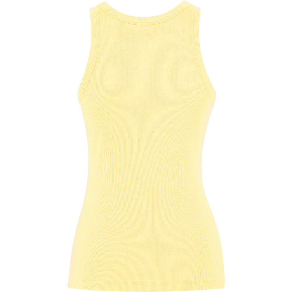 Dámské tričko z žebrovaného úpletu. Široký výstřih a průramky ze stejného materiálu a dvěma zesílenými švy. Dvojitě prošitý lem.