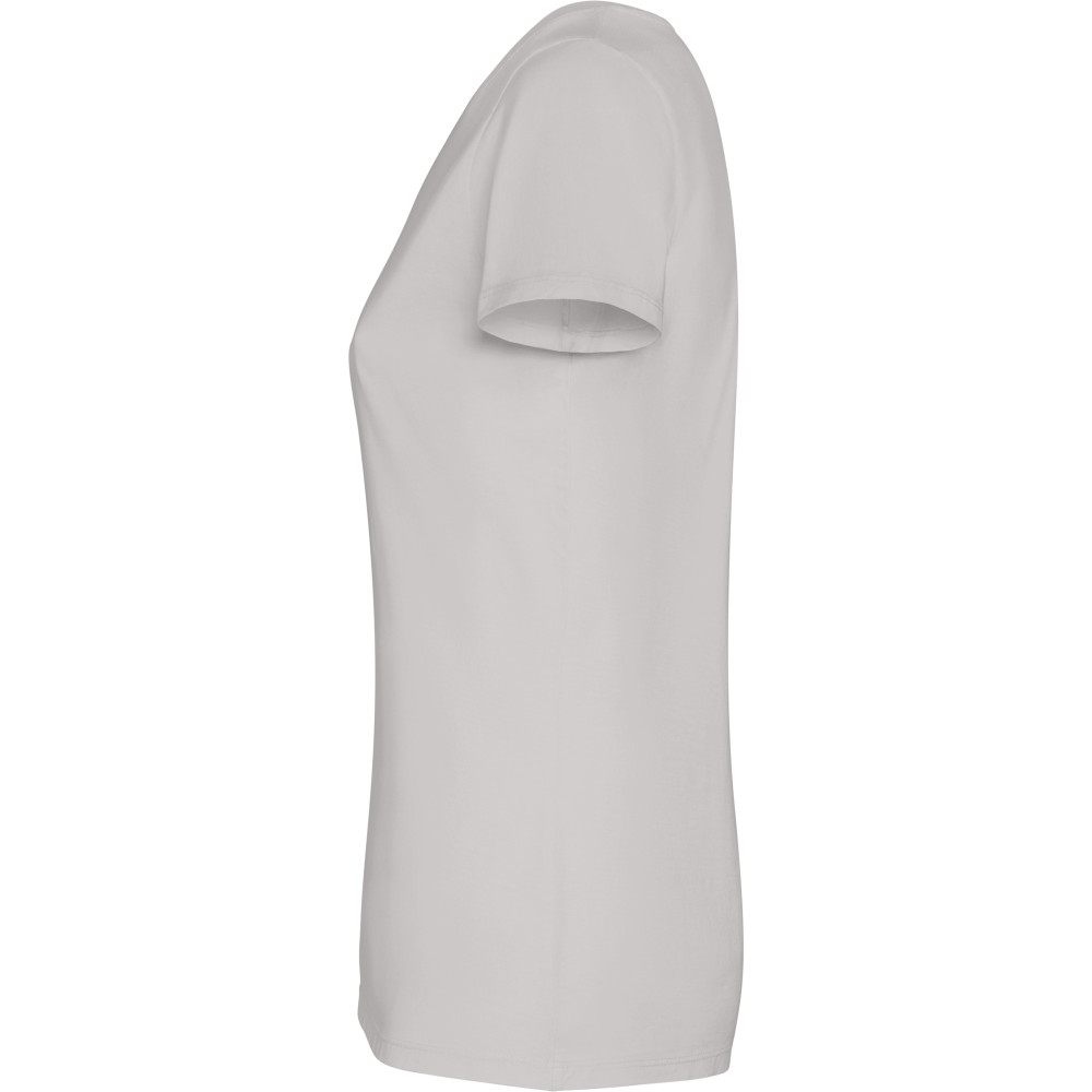 Dámské tričko s krátkým rukávem. Česaná bavlna s vypraným efektem. Kulatý výstřih s žebrováním 1x1. Podlepený výstřih ze stejného materiálu. Dvojité švy na bocích a v podpaží.