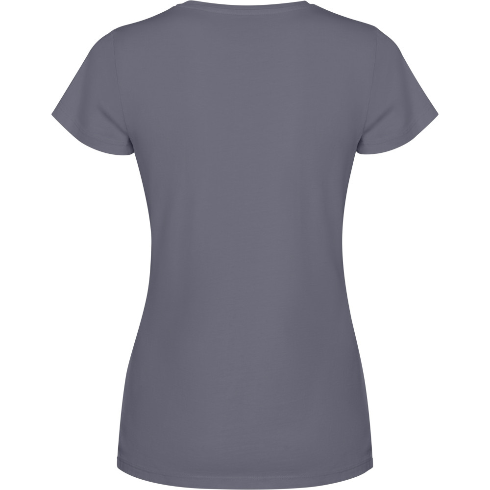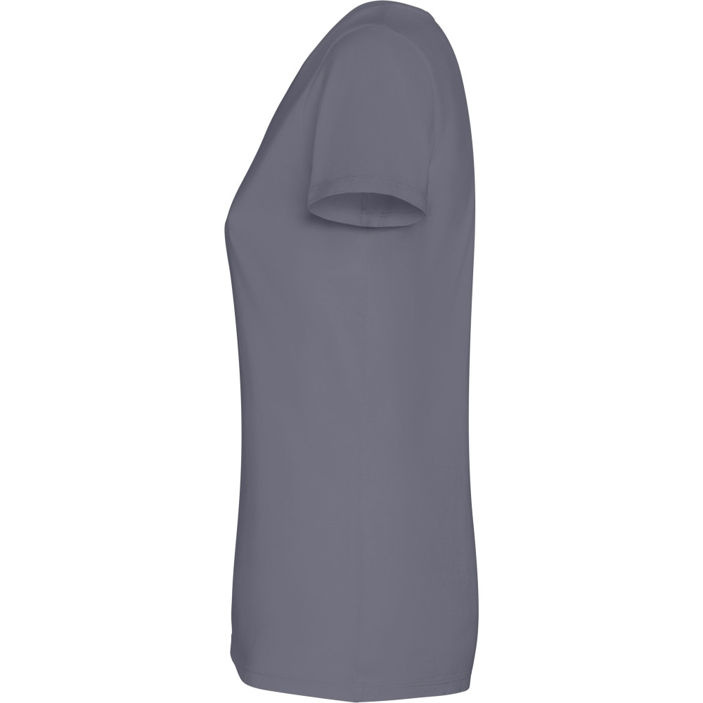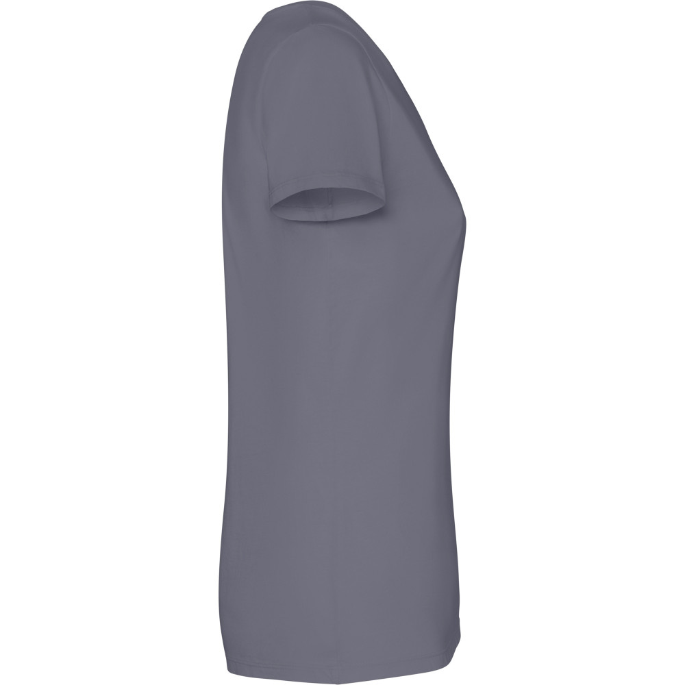 Dámské tričko s krátkým rukávem. Česaná bavlna s vypraným efektem. Kulatý výstřih s žebrováním 1x1. Podlepený výstřih ze stejného materiálu. Dvojité švy na bocích a v podpaží.