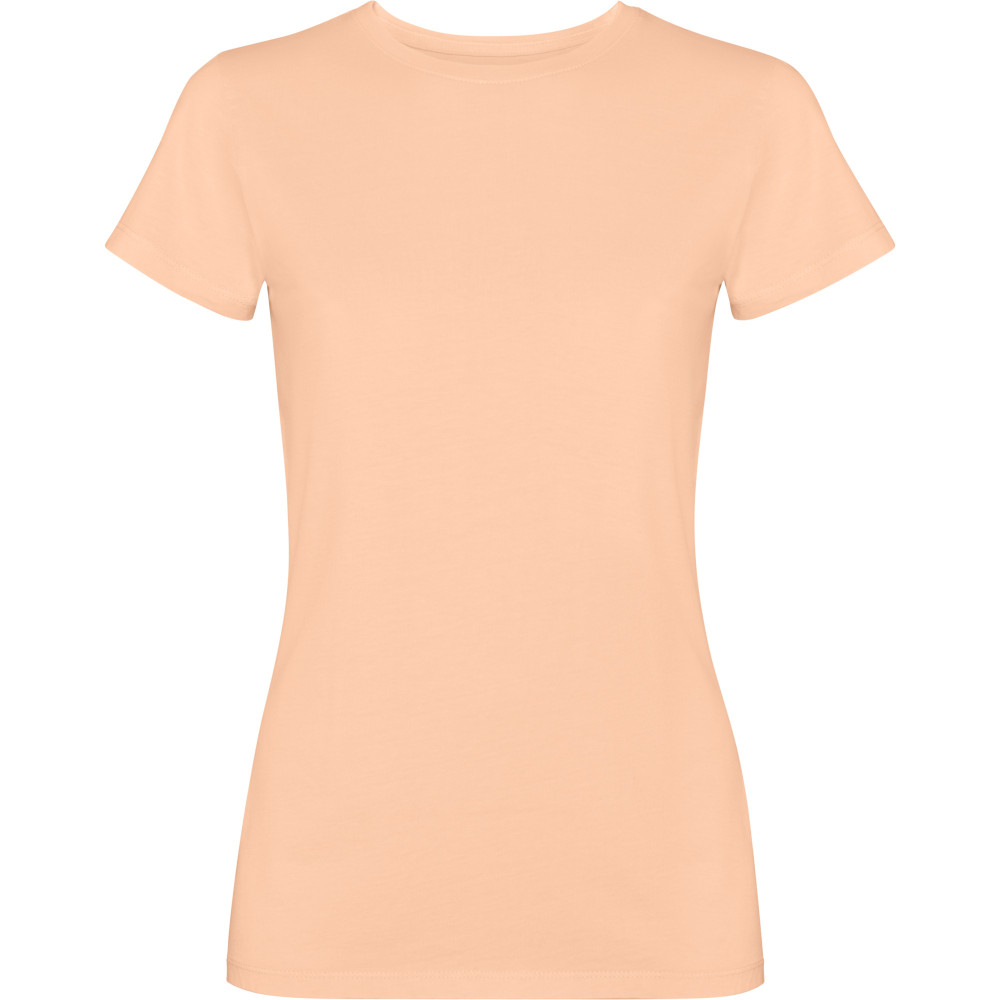 Dámské tričko s krátkým rukávem. Česaná bavlna s vypraným efektem. Kulatý výstřih s žebrováním 1x1. Podlepený výstřih ze stejného materiálu. Dvojité švy na bocích a v podpaží.