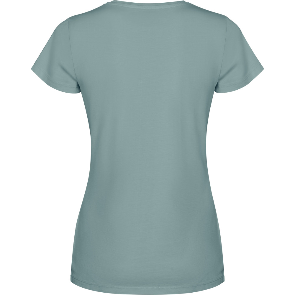 Dámské tričko s krátkým rukávem. Česaná bavlna s vypraným efektem. Kulatý výstřih s žebrováním 1x1. Podlepený výstřih ze stejného materiálu. Dvojité švy na bocích a v podpaží.