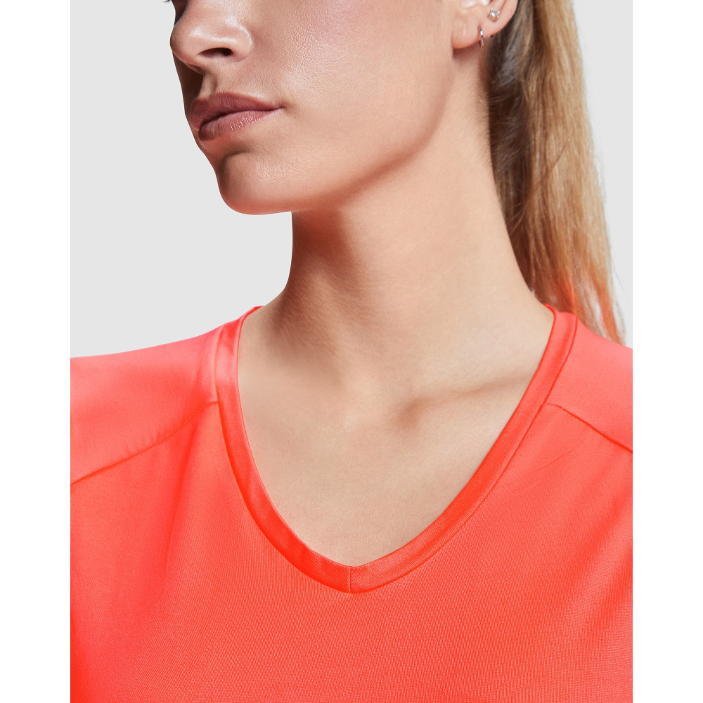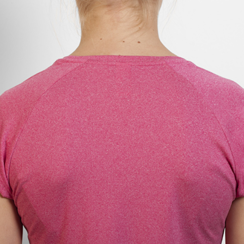 Sportovní dámské triko s raglánovým rukávem. Vyrobeno z polyester-cotton touch - na omak působí jako bavlna. Přiléhavý střih, funkční a prodyšný materiál