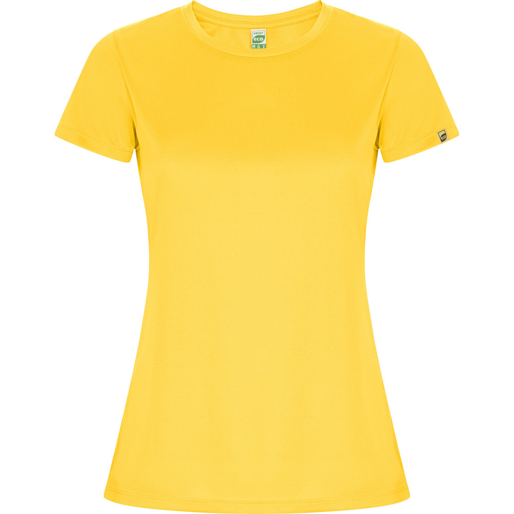 Dámské sportovní tričko s krátkým rukávem s příměsí recyklovaného rychleschnoucího polyesteru. Kulatý výstřih, zpěvněné švy na průkrčníku. Štítek s logem ECO na rukávu. Přiléhavý střih. Zabaleno samostatně v recyklovatelném sáčku.