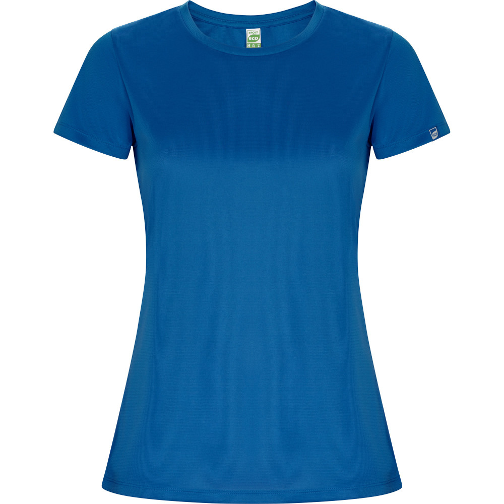Dámské sportovní tričko s krátkým rukávem s příměsí recyklovaného rychleschnoucího polyesteru. Kulatý výstřih, zpěvněné švy na průkrčníku. Štítek s logem ECO na rukávu. Přiléhavý střih. Zabaleno samostatně v recyklovatelném sáčku.