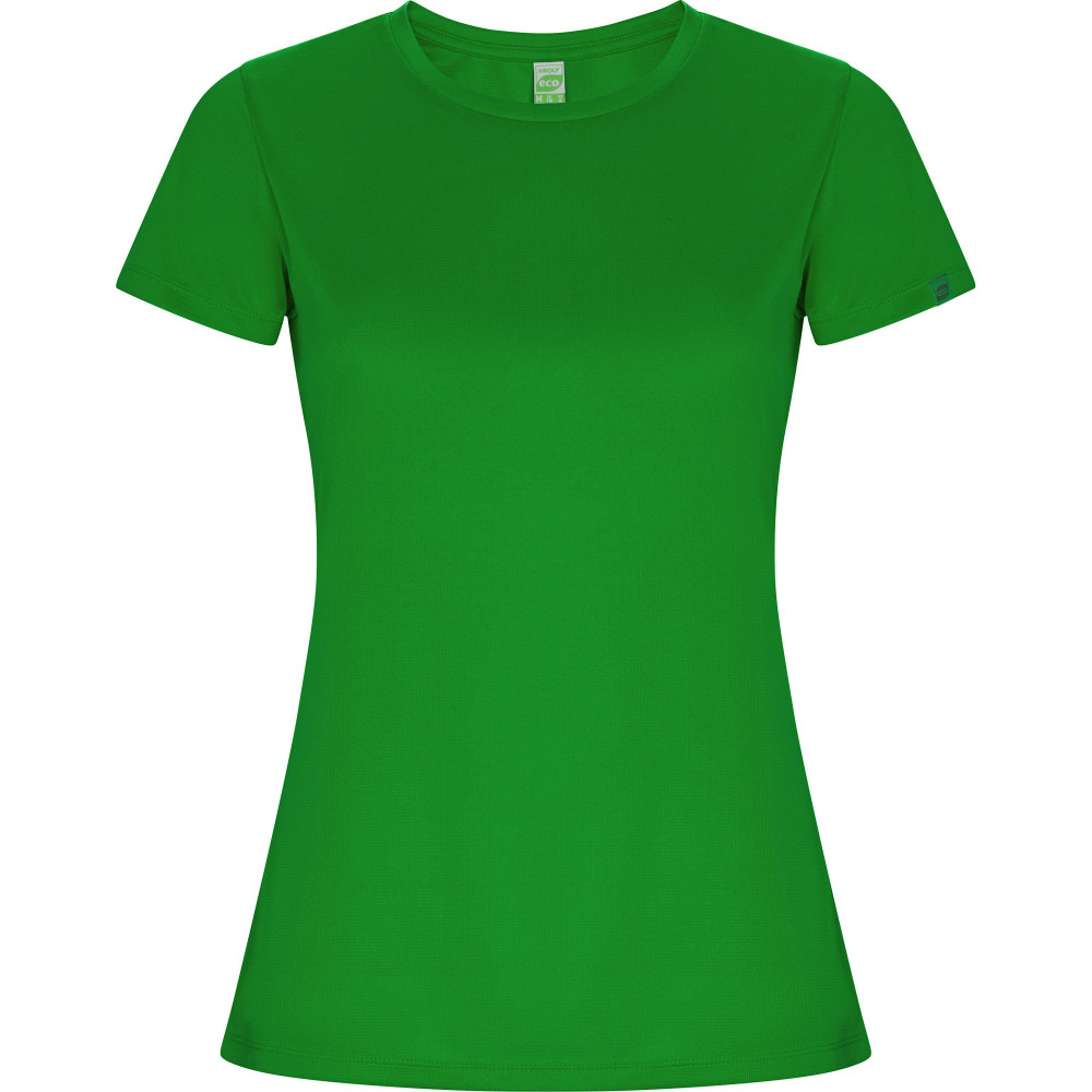 Dámské sportovní tričko s krátkým rukávem s příměsí recyklovaného rychleschnoucího polyesteru. Kulatý výstřih, zpěvněné švy na průkrčníku. Štítek s logem ECO na rukávu. Přiléhavý střih. Zabaleno samostatně v recyklovatelném sáčku.