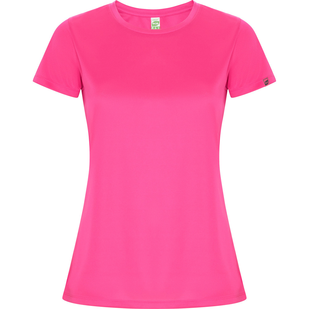 Dámské sportovní tričko s krátkým rukávem s příměsí recyklovaného rychleschnoucího polyesteru. Kulatý výstřih, zpěvněné švy na průkrčníku. Štítek s logem ECO na rukávu. Přiléhavý střih. Zabaleno samostatně v recyklovatelném sáčku.