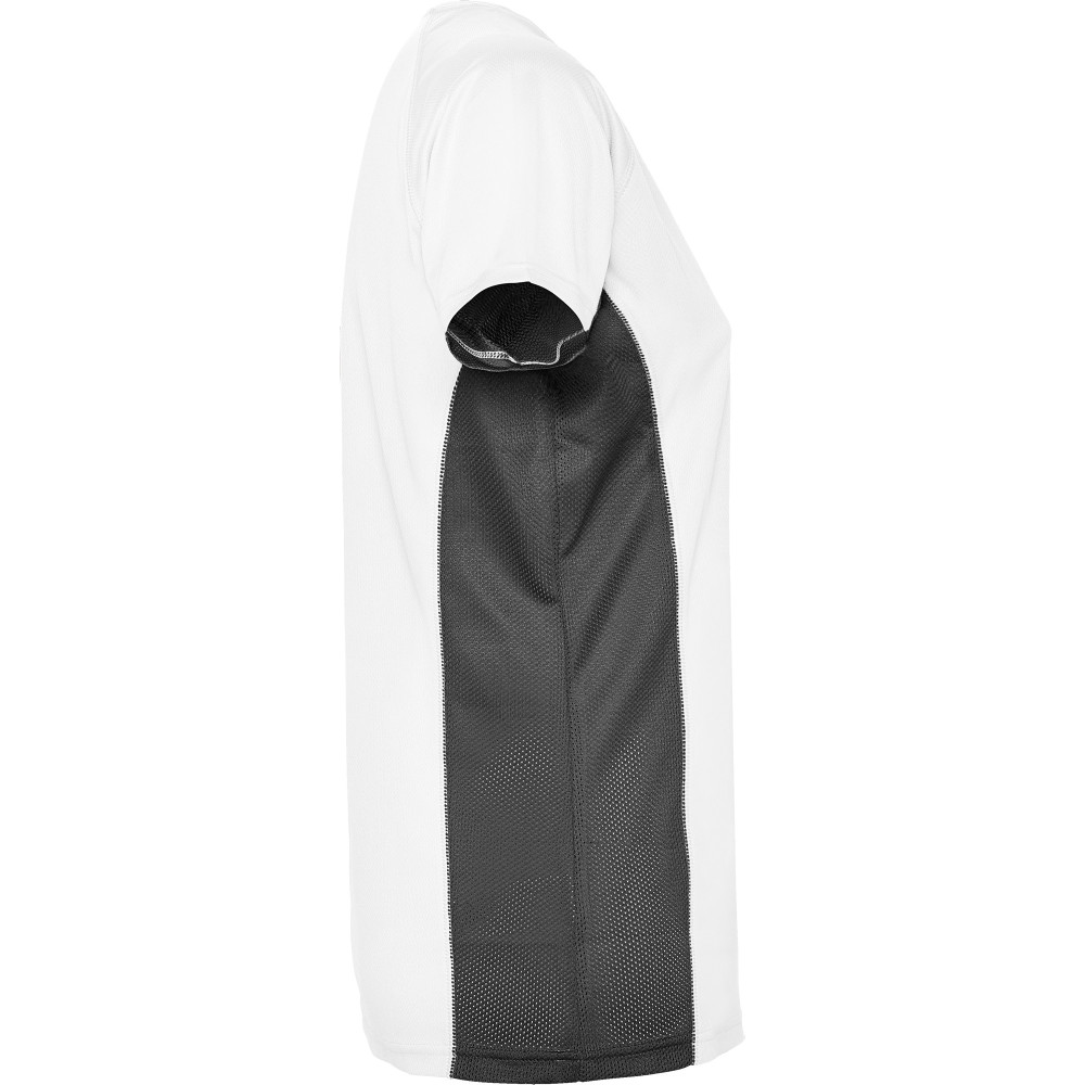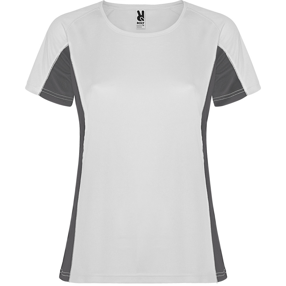 Dámské funkční triko s krátkým rukávem. Kombinace dvou polyesterových tkanin. Hlavní materiál: 100% polyester-honeycomb, boční panely: 100% mikroperforovaný polyester. Raglánové rukávy. Kulatý výstřih, zpevněné švy na průkrčníku. Pohodlné a snadno přizpůsobivé.