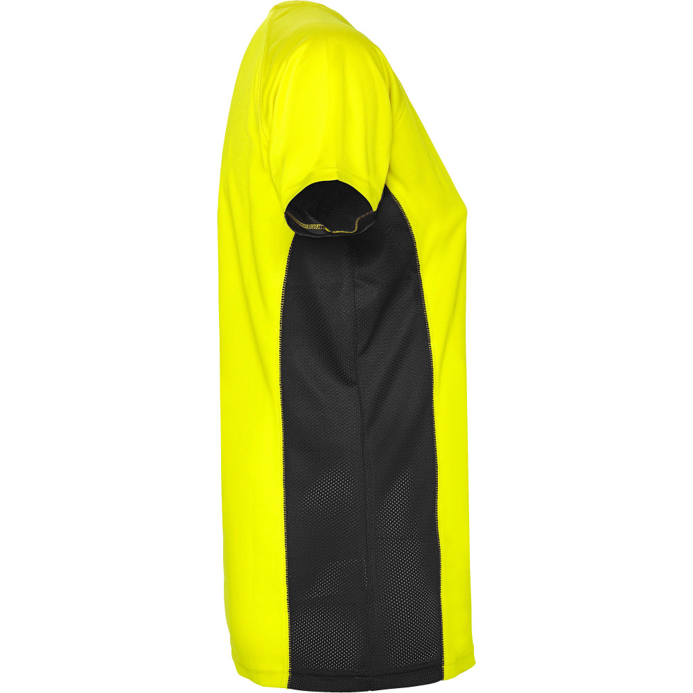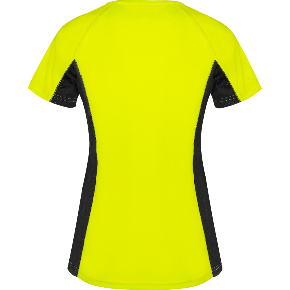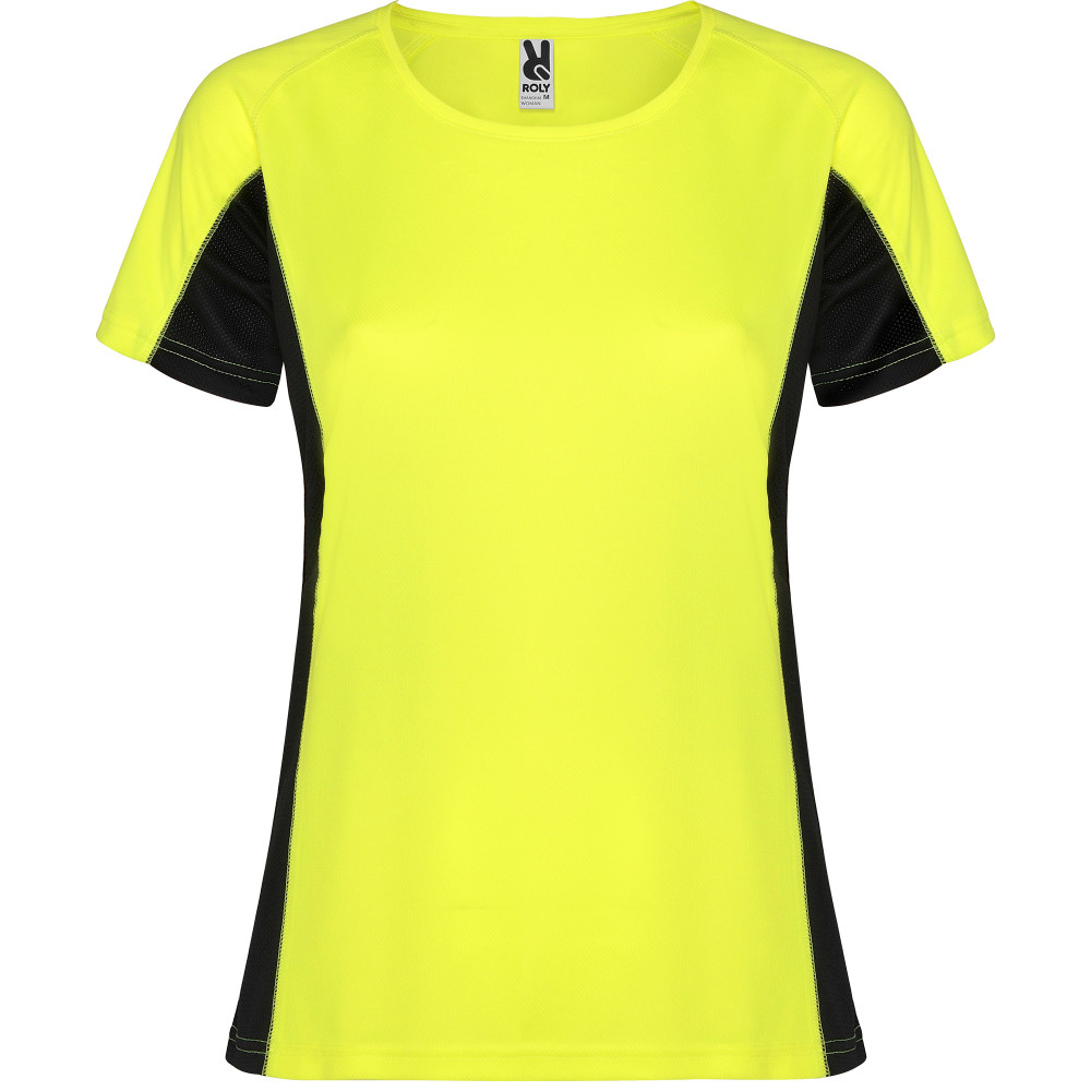Dámské funkční triko s krátkým rukávem. Kombinace dvou polyesterových tkanin. Hlavní materiál: 100% polyester-honeycomb, boční panely: 100% mikroperforovaný polyester. Raglánové rukávy. Kulatý výstřih, zpevněné švy na průkrčníku. Pohodlné a snadno přizpůsobivé.