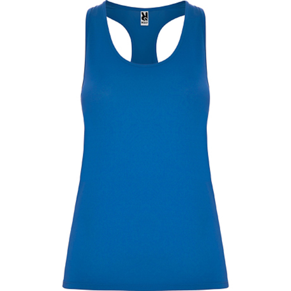 Sportovní dámské/dívčí tílko s kulatým výstřihem a se zadním vykrojením v plaveckém stylu. Vyrobeno z polyesteru, na omak materiál působí jako bavlna. Přiléhavý střih.