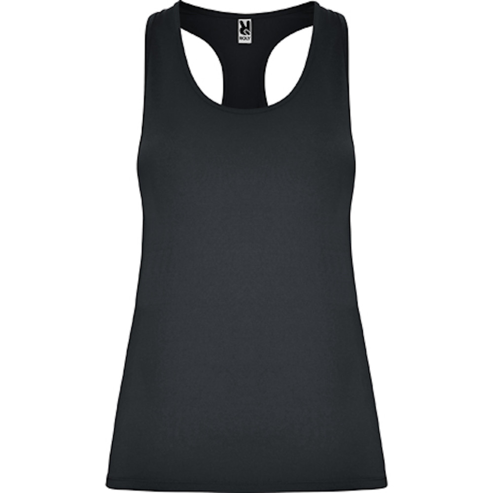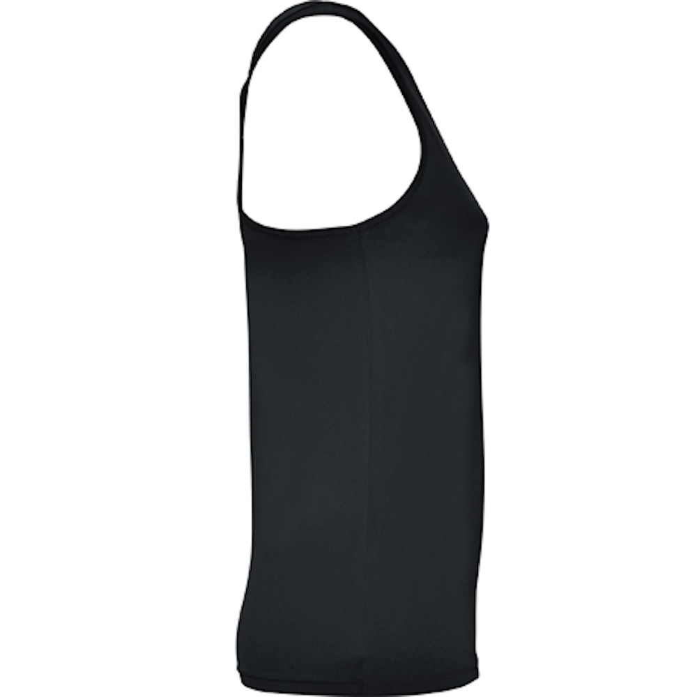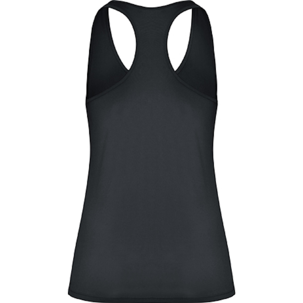 Sportovní dámské/dívčí tílko s kulatým výstřihem a se zadním vykrojením v plaveckém stylu. Vyrobeno z polyesteru, na omak materiál působí jako bavlna. Přiléhavý střih.