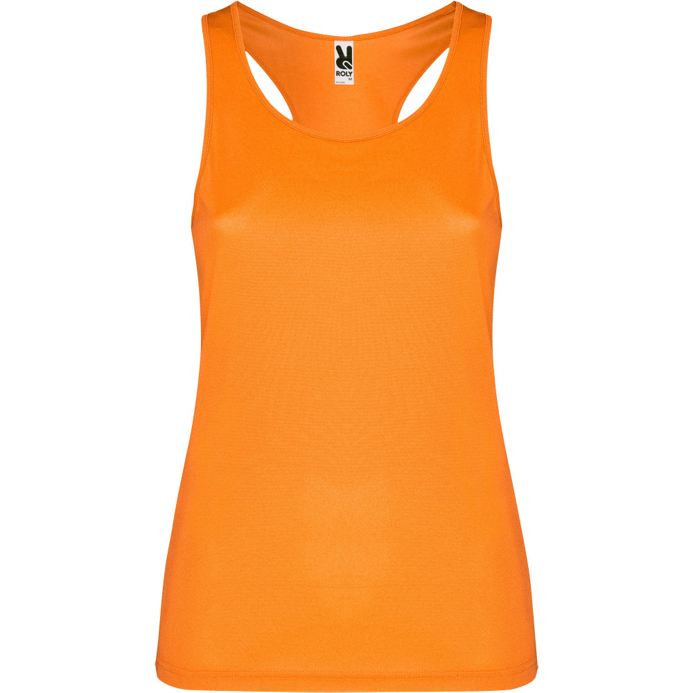 Dámské sportovní tílko s žebrovanými průramky a průkrčníkem. Zadní strana v plaveckém stylu, boční švy.
