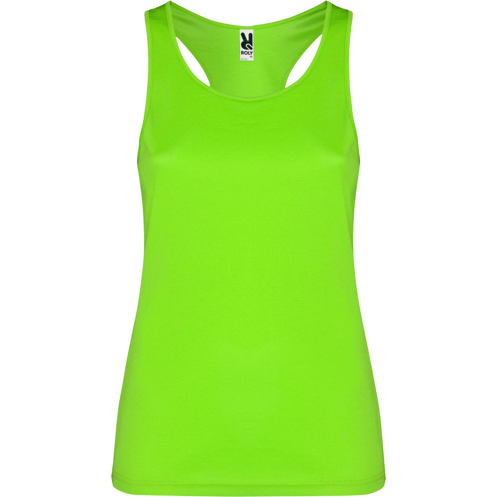 Dámské sportovní tílko s žebrovanými průramky a průkrčníkem. Zadní strana v plaveckém stylu, boční švy.
