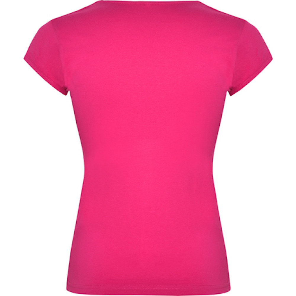 Vypasované dámské tričko s kulatým výstřihem prostřiženým do V. Krátké rukávky, boční švy.