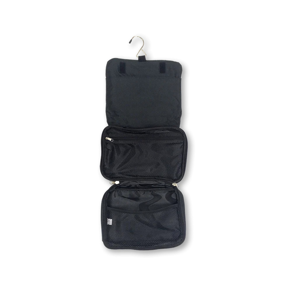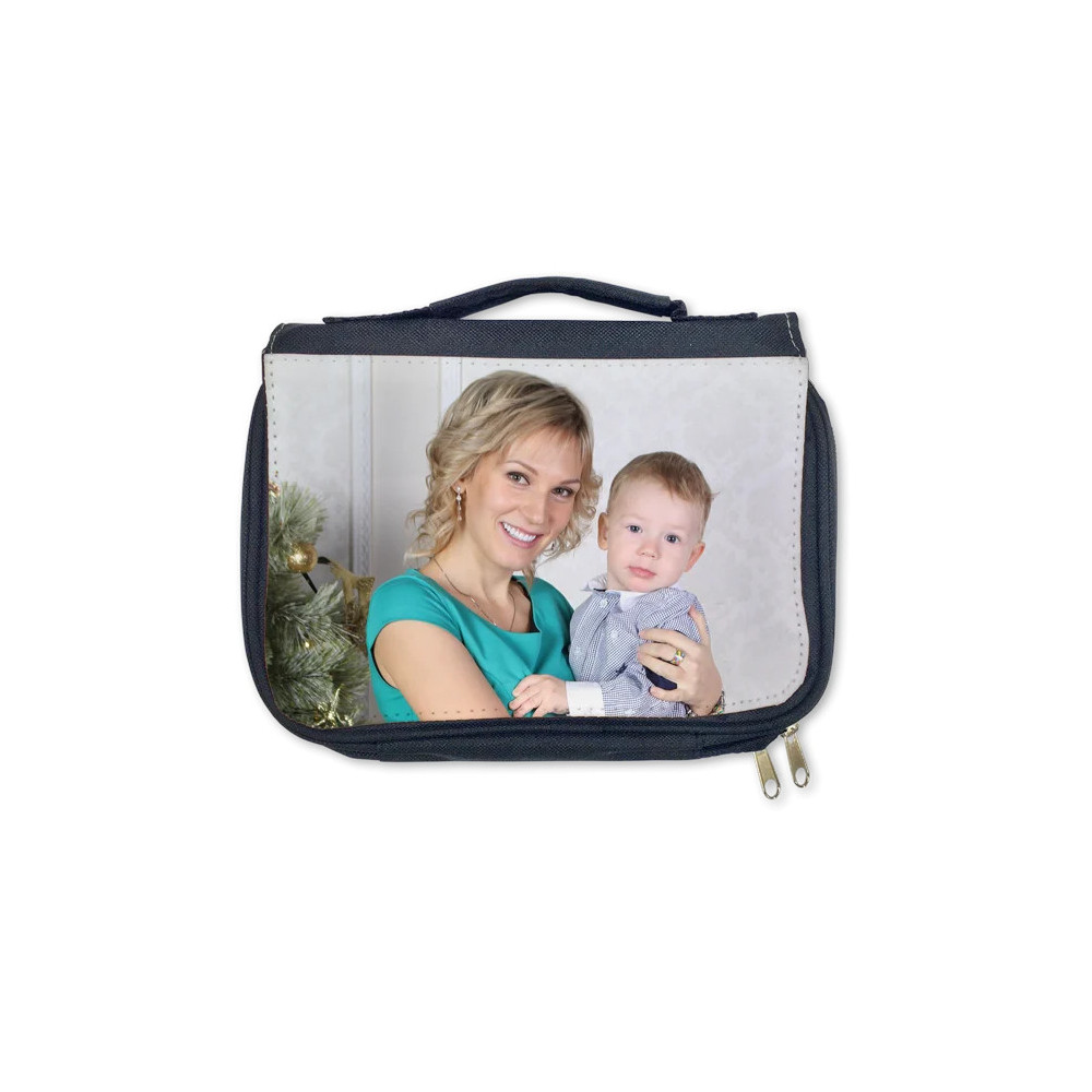 Skládací toaletní taška s čelní bílou plochou (PE) na sublimační potisk. V horní části má ucho na nošení a pokud ji rozložíte (uzávěr na suchý zip) lze ji zavěsit pomocí ramínkového háčku. Má několik přihrádek (jednu na zip) na uložení základních toaletních potřeb na Vašich cestách. Velice často je používána na hřebeny atd pro Vaše domácí mazlíčky.