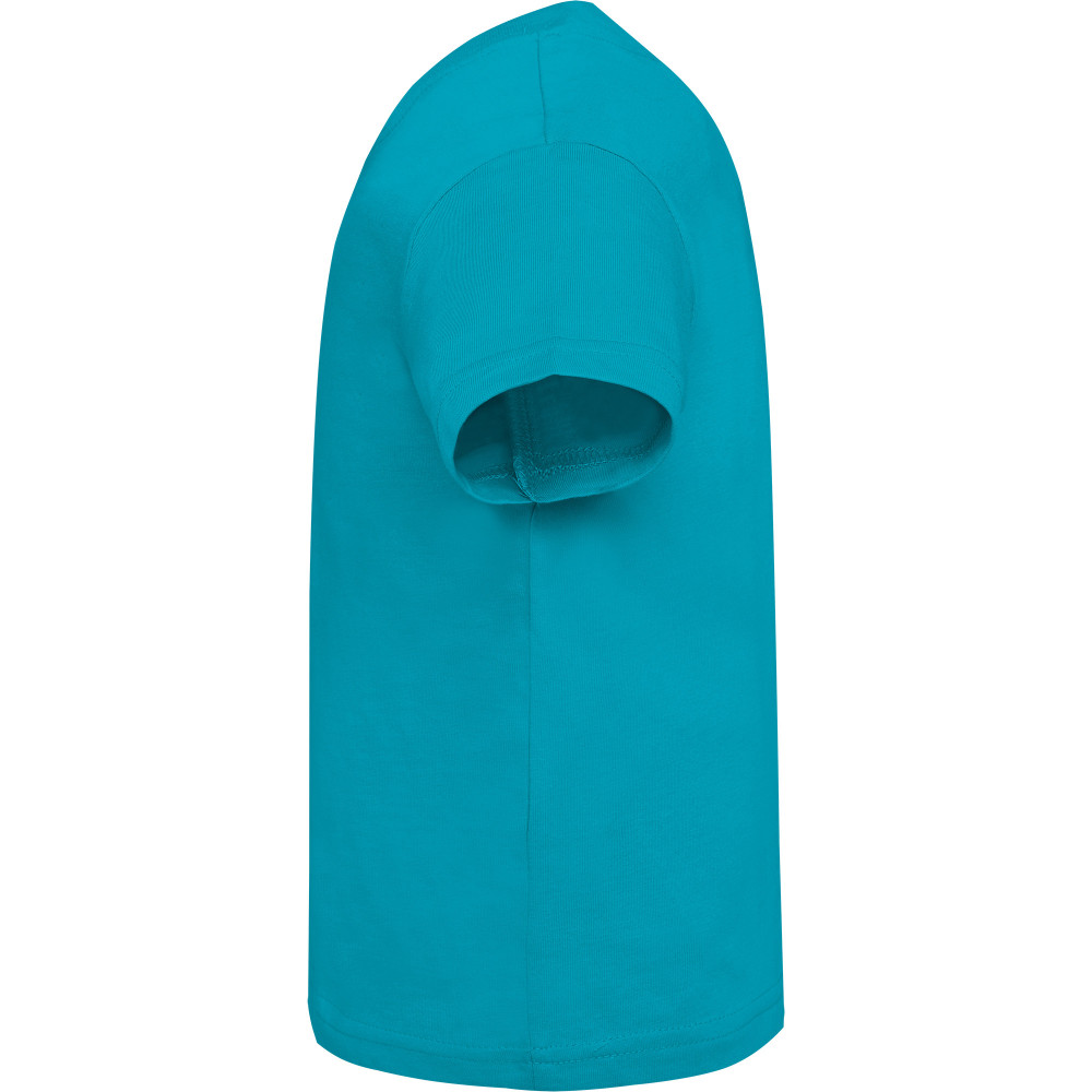 Bavlněné dětské tričko s kulatým průkrčníkem a bočními švy. Velikosti 6, 12 a 18 měsíců se zapínáním na rameni.