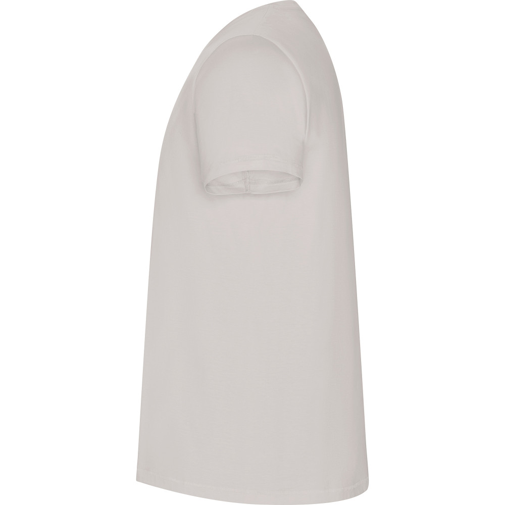 Pánské/dětské tričko s krátkým rukávem z organické bavlny, bez bočních švů. Kulatý průkrčník s žebrováním 1x1. Dekorativní prošití na spodním lemu a rukávech.