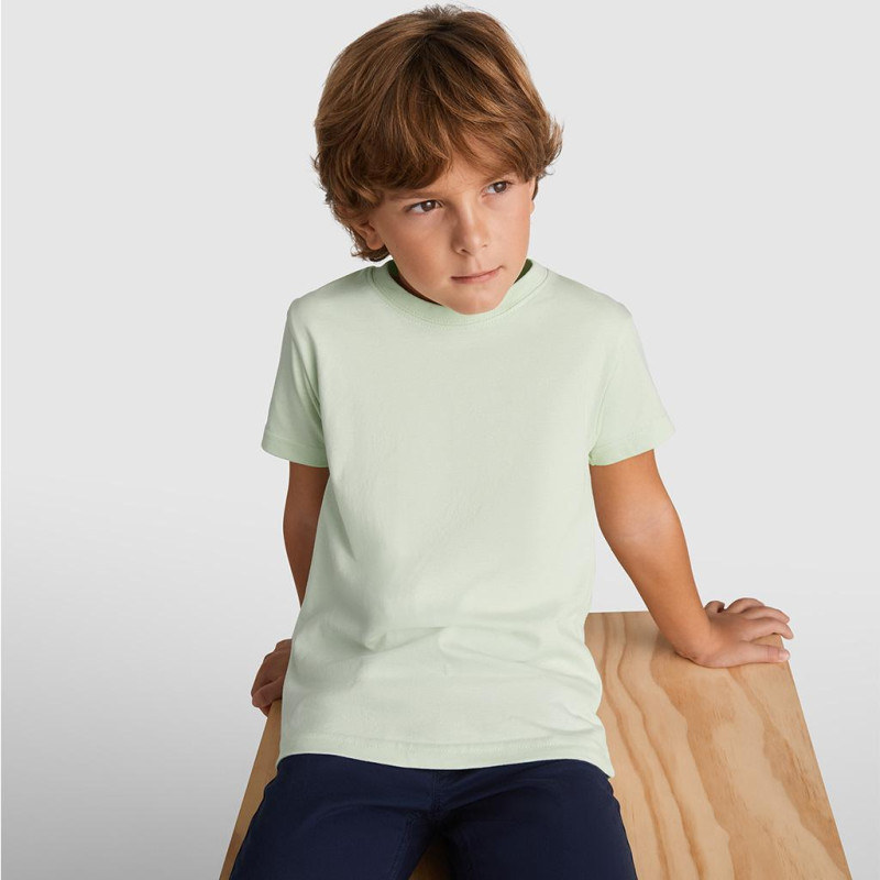 Tričko s krátkým rukávem bez bočních švů. Kulatý průkrčník s elastanem. Dětské velikosti mají boční švy.