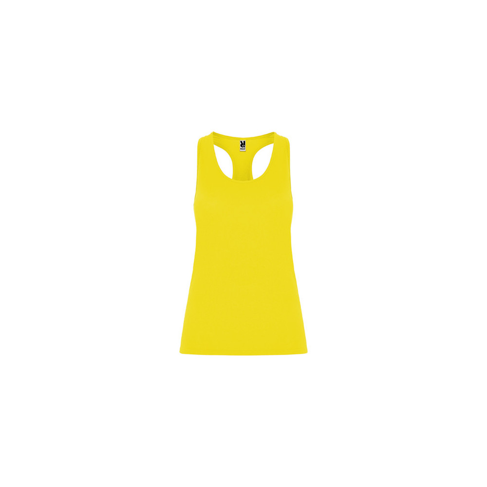 Sportovní dámské/dívčí tílko s kulatým výstřihem a se zadním vykrojením v plaveckém stylu. Vyrobeno z polyesteru, na omak materiál působí jako bavlna. Přiléhavý střih.