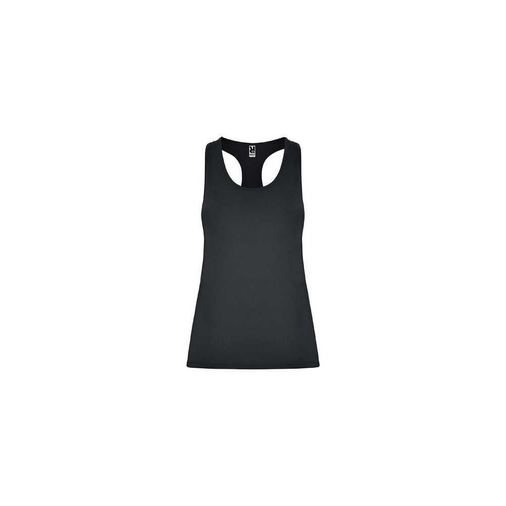 Sportovní dámské/dívčí tílko s kulatým výstřihem a se zadním vykrojením v plaveckém stylu. Vyrobeno z polyesteru, na omak materiál působí jako bavlna. Přiléhavý střih.