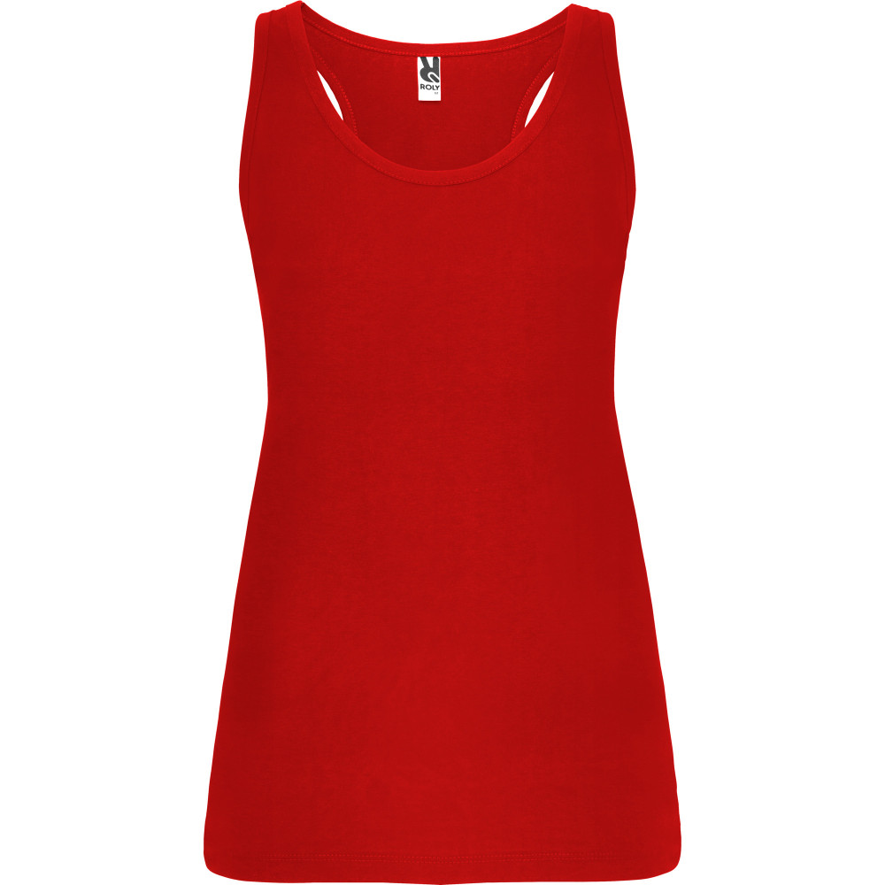 Přiléhavé dámské tílko s boxerskými ramínky z hladkého úpletu. Lemování výstřihu a ramínek z žebrovaného úpletu, boční švy.