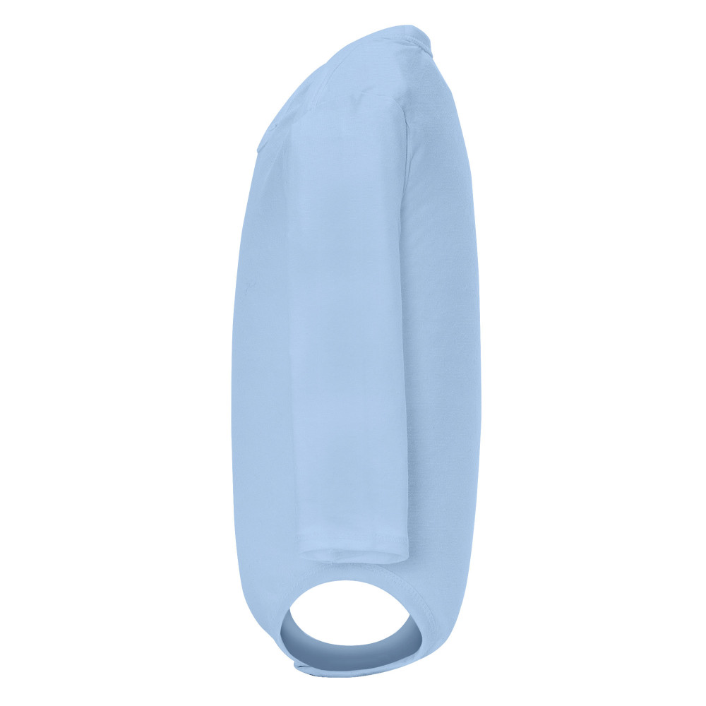 Kojenecké body s dlouhým rukávem. 1x1 žebrovaný průkrčník a spodní část. Zapínaní na cvočky v rozkroku. Na ramínkách překřížení pro snadné oblékání.
