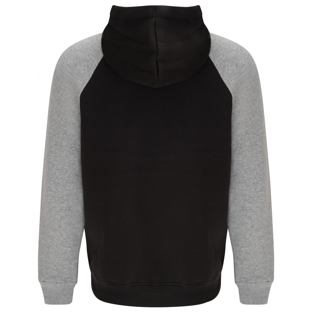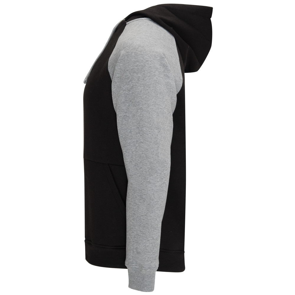 Pánská / dětská dvojbarevná mikina. Mikina má překřížený výstřih a kovové kroužky na šňůrky, kontrastní vnitřní kapuci a šňůrky, kontrastní rukáv raglánového stylu a klokaní kapsu. Manžety a spodní lem jsou s elastickým žebrováním 1x1. Mikiny v dětském provedení jsou dodávány bez šňůrek v kapuci. Odnímatelný štítek.