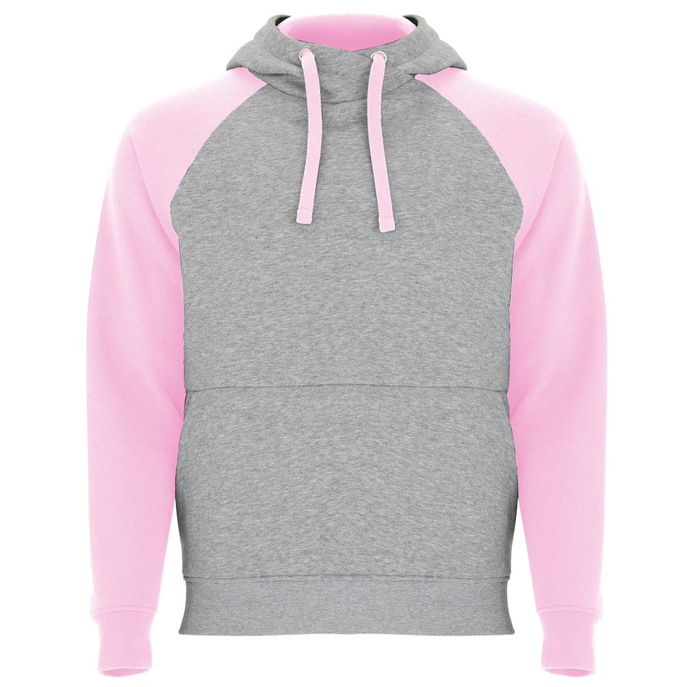 Pánská / dětská dvojbarevná mikina. Mikina má překřížený výstřih a kovové kroužky na šňůrky, kontrastní vnitřní kapuci a šňůrky, kontrastní rukáv raglánového stylu a klokaní kapsu. Manžety a spodní lem jsou s elastickým žebrováním 1x1. Mikiny v dětském provedení jsou dodávány bez šňůrek v kapuci. Odnímatelný štítek.