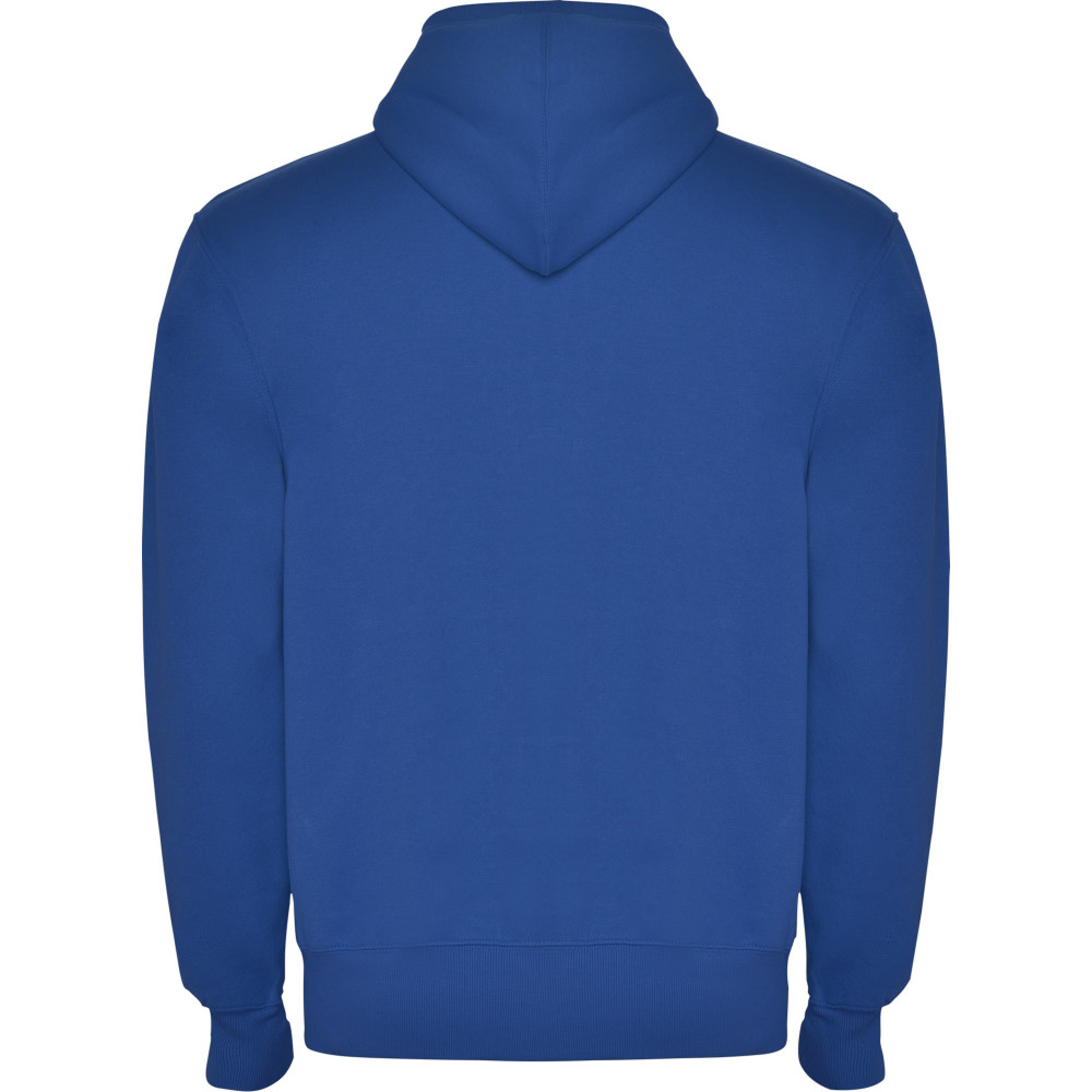 Mikina s kapucí a klokaní kapsou, celopropínací na zip. Lemování kapuce, kapes, rukávů a spodní okraj v žebrovaném úpletu 2x2.