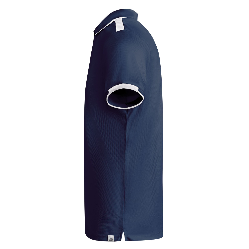 Pánská/dětská sportovní polokošile s krátkým rukávem z antibakteriálního recyklovaného polyesteru. Polokošile má 1x1 žebrovaný límec a detail v kontrastní barvě v lemech rukávů a na ramenou. Zesílené kryté švy v límci. Zapínání na dva zapínací knoflíky a skrytý spodní knoflík. Boční rozparky na spodním lemu.