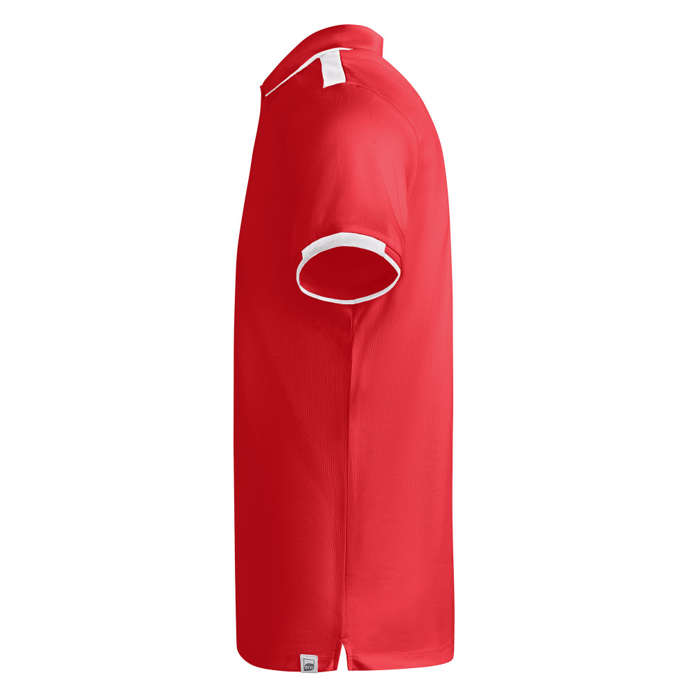 Pánská/dětská sportovní polokošile s krátkým rukávem z antibakteriálního recyklovaného polyesteru. Polokošile má 1x1 žebrovaný límec a detail v kontrastní barvě v lemech rukávů a na ramenou. Zesílené kryté švy v límci. Zapínání na dva zapínací knoflíky a skrytý spodní knoflík. Boční rozparky na spodním lemu.