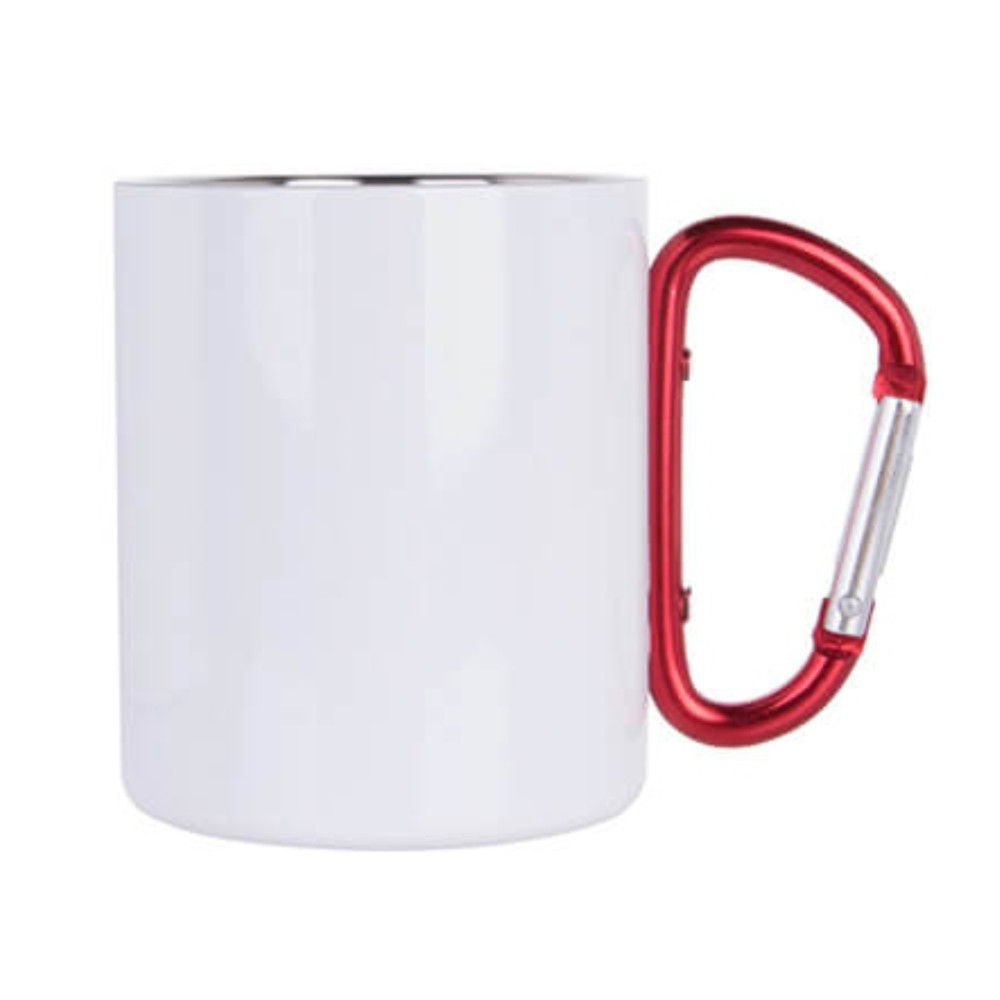 Hrnek kovový s ouškem červená karabina