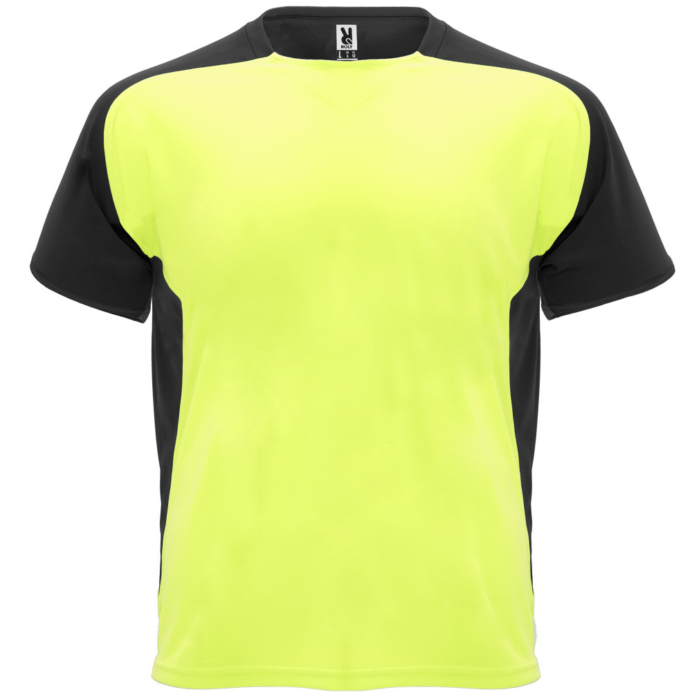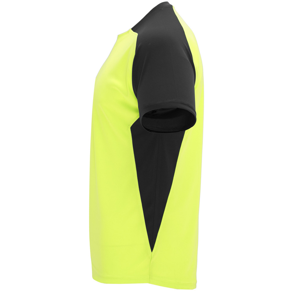 Funkční tričko s krátkým raglánovým rukávem. Kulatý výstřih se zakrytím švů tón v tónu. Kontrastní rukávy a postranní panely.