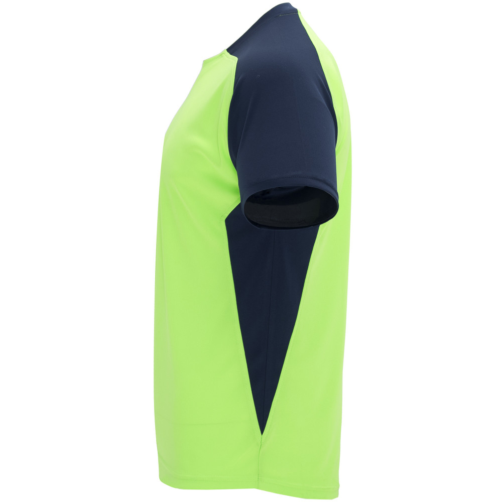 Funkční tričko s krátkým raglánovým rukávem. Kulatý výstřih se zakrytím švů tón v tónu. Kontrastní rukávy a postranní panely.