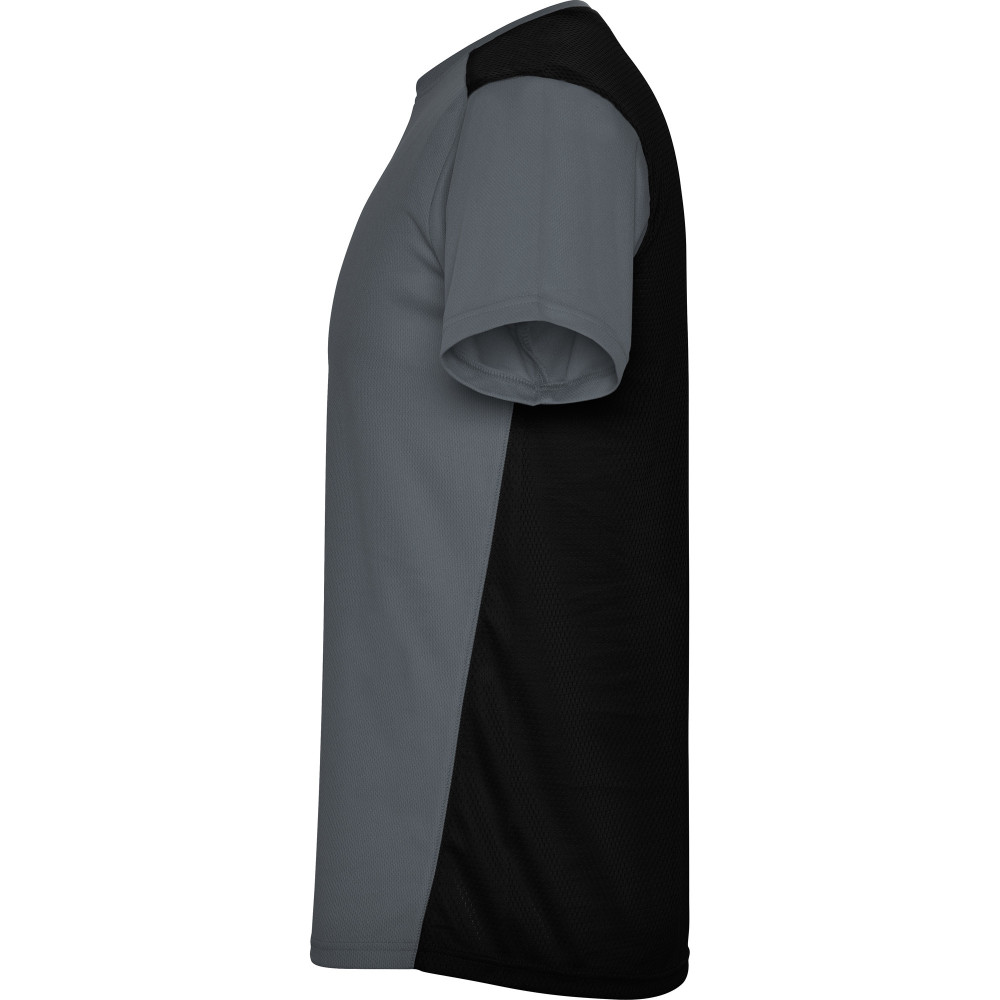 Funkční triko s krátkým rukávem.Tričko má kulatý výstřih a je kombinací dvou polyesterových tkanin.Přední materiál polyester honeycomb a polyester 3D mřížky na ramenou a zadní straně .Materiál dobře absorbuje vlhkost a má dekorativní švy na ramenou,na bocích a prodlouženou zadní stranu.