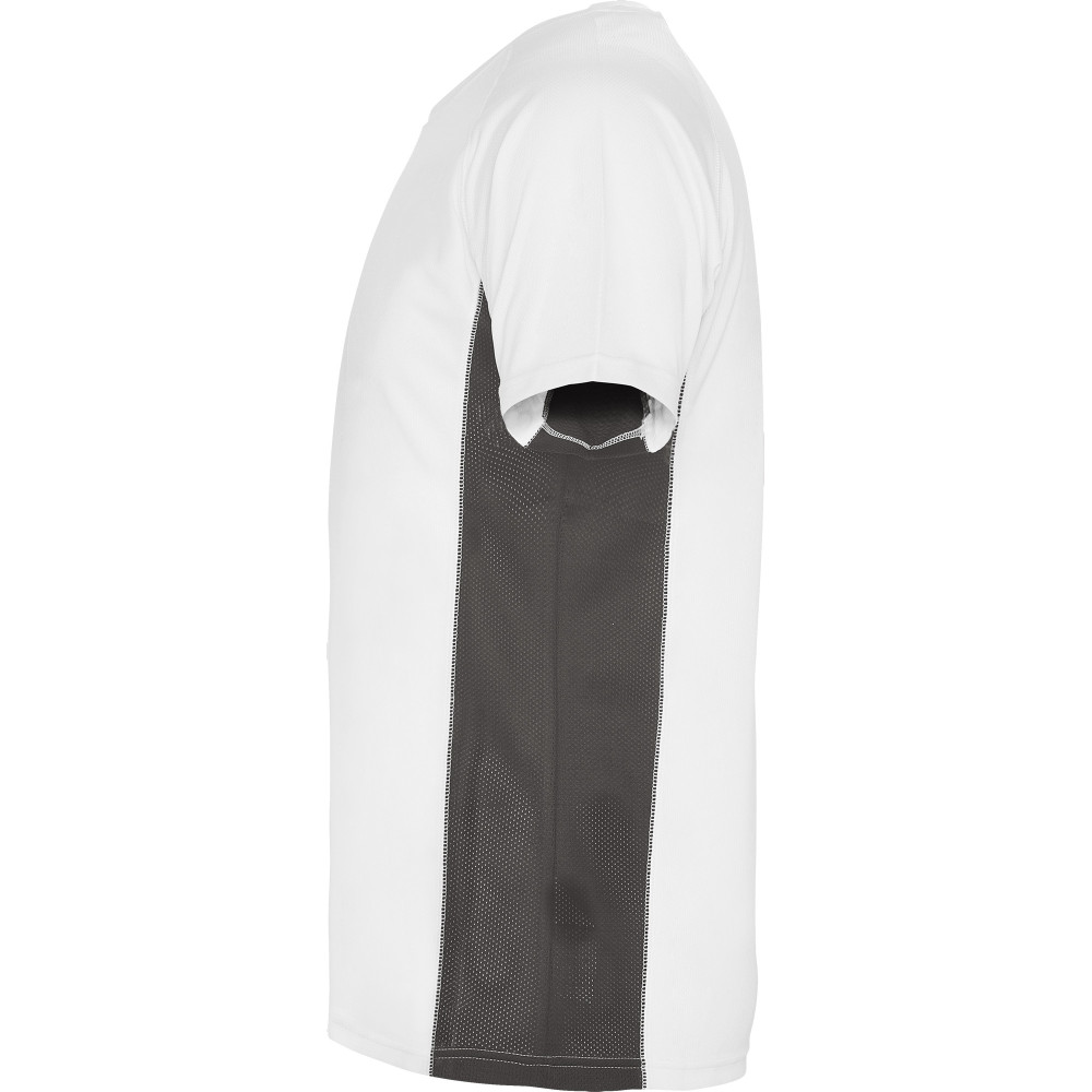 Funkční triko s krátkým rukávem. Kombinace dvou polyesterových tkanin. Hlavní materiál: 100% polyester-honeycomb, boční panely: 100% mikroperforovaný polyester. Raglánové rukávy. Kulatý výstřih, zpevněné švy na průkrčníku. Pohodlné a snadno přizpůsobivé.