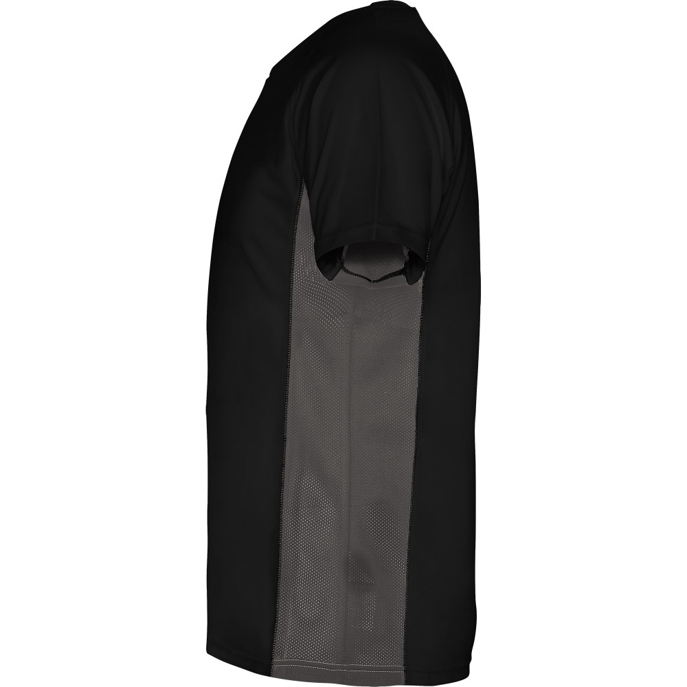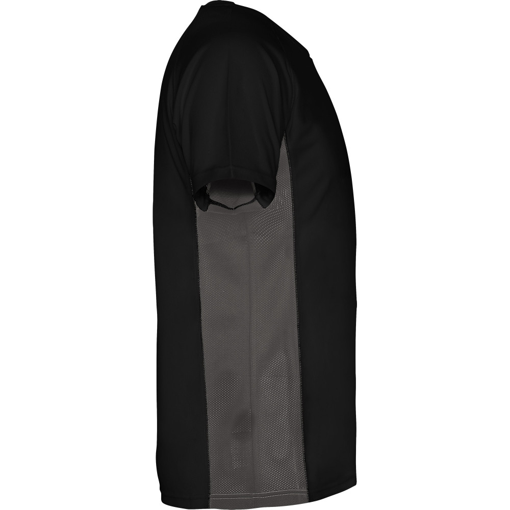 Funkční triko s krátkým rukávem. Kombinace dvou polyesterových tkanin. Hlavní materiál: 100% polyester-honeycomb, boční panely: 100% mikroperforovaný polyester. Raglánové rukávy. Kulatý výstřih, zpevněné švy na průkrčníku. Pohodlné a snadno přizpůsobivé.