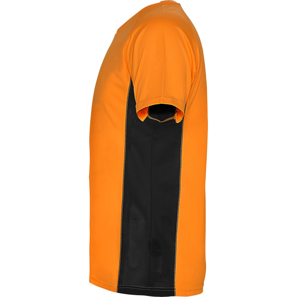 Funkční triko s krátkým rukávem. Kombinace dvou polyesterových tkanin. Hlavní materiál: 100% polyester-honeycomb, boční panely: 100% mikroperforovaný polyester. Raglánové rukávy. Kulatý výstřih, zpevněné švy na průkrčníku. Pohodlné a snadno přizpůsobivé.