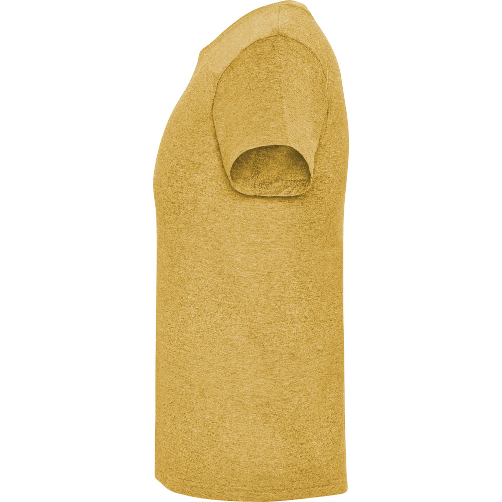 Tričko s krátkým rukávem,melír tkanina. Tričko má kulatý výstřih z žebrovaného úpletu 1x1, zpevněné kryté švy na průkrčníku a je bez bočních švů.