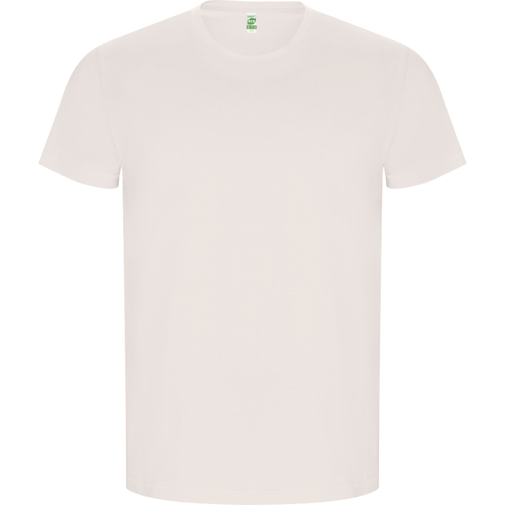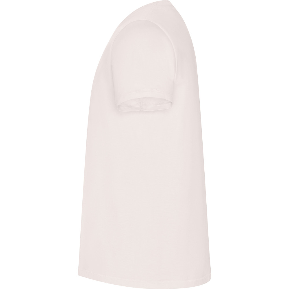 Pánské tričko s krátkým rukávem z organické bavlny, bez bočních švů. Kulatý průkrčník s žebrováním 1x1. Dekorativní prošití na spodním lemu a rukávech.