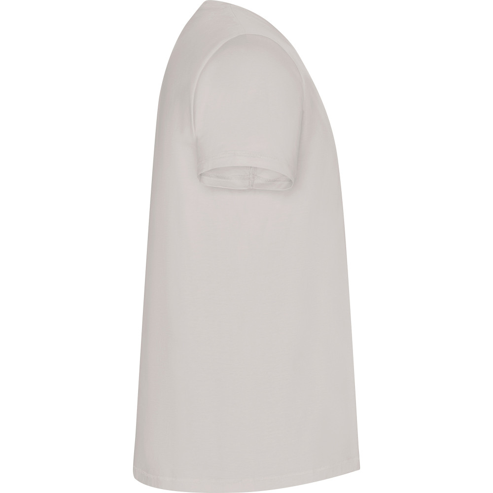 Pánské tričko s krátkým rukávem z organické bavlny, bez bočních švů. Kulatý průkrčník s žebrováním 1x1. Dekorativní prošití na spodním lemu a rukávech.